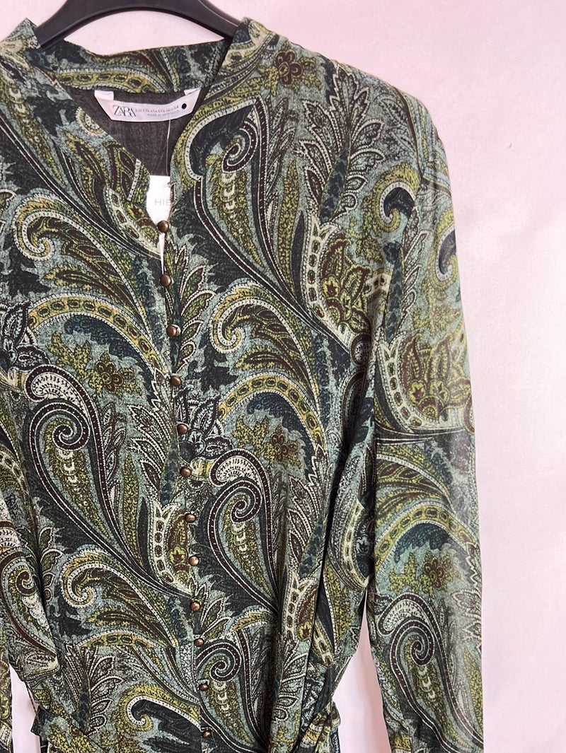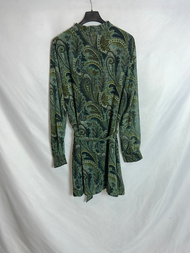 ZARA. Vestido estampado amebas tonos verdes T.XXL