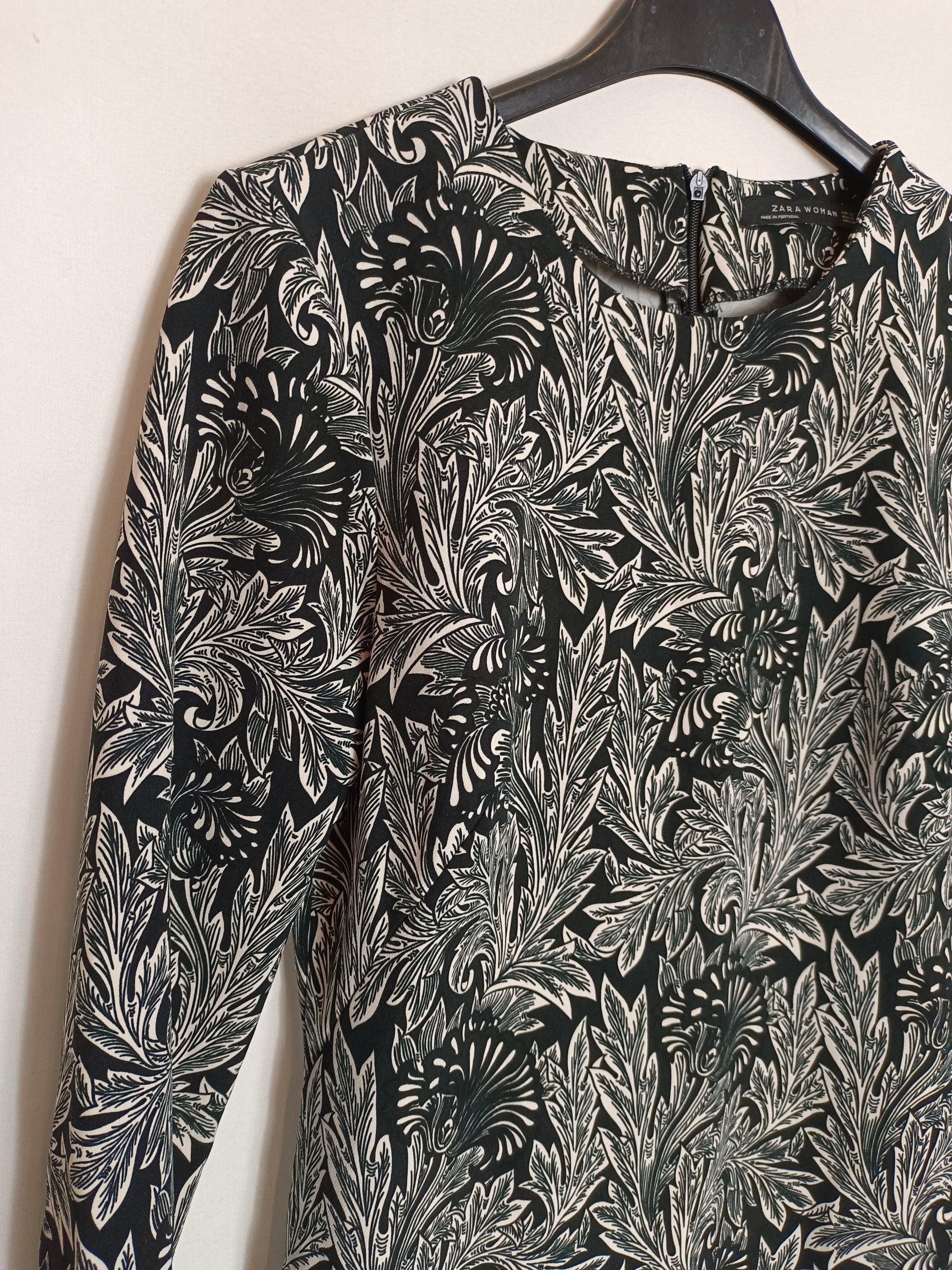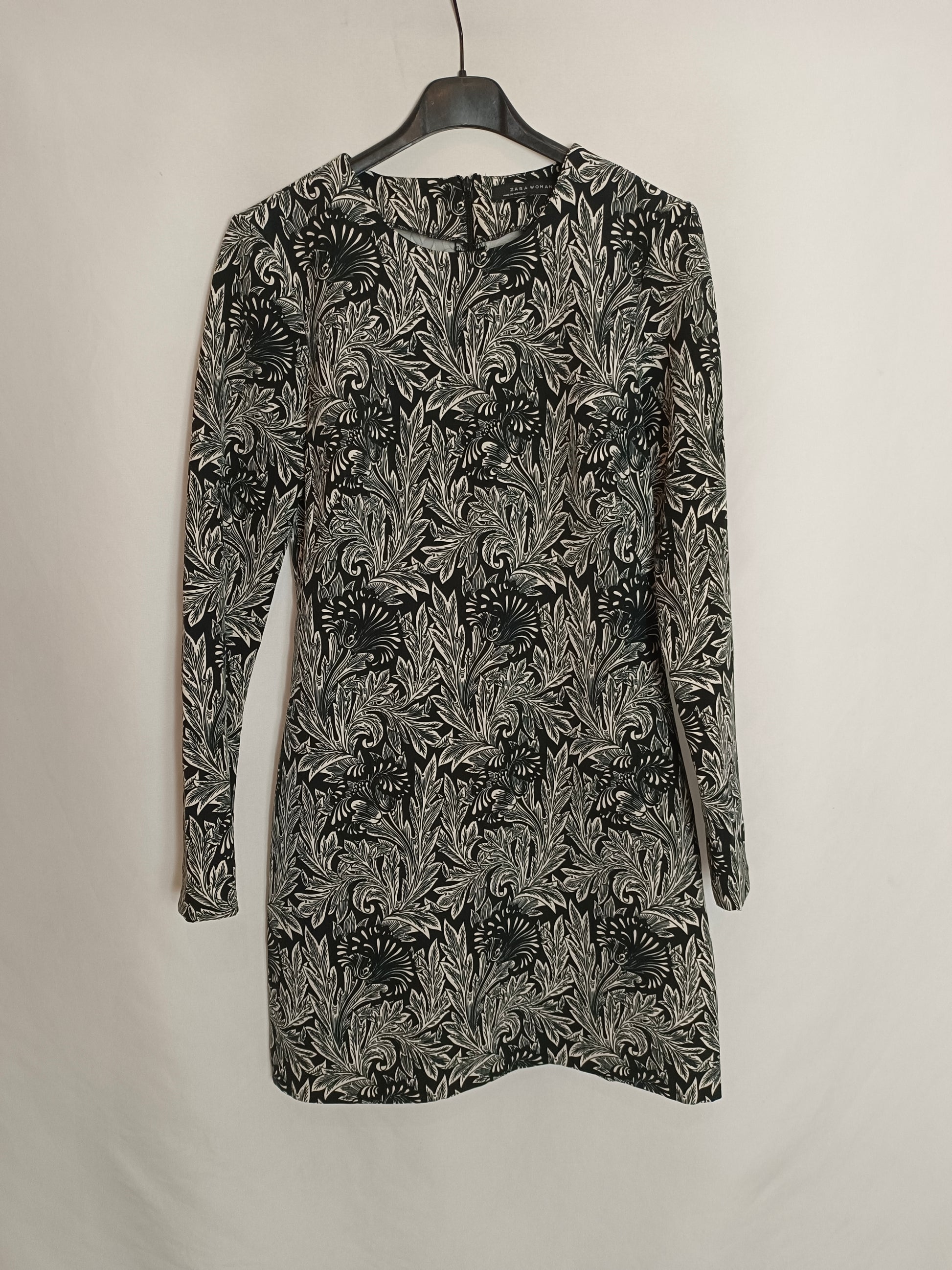 ZARA. Vestido estampado blanco y negro T.xs