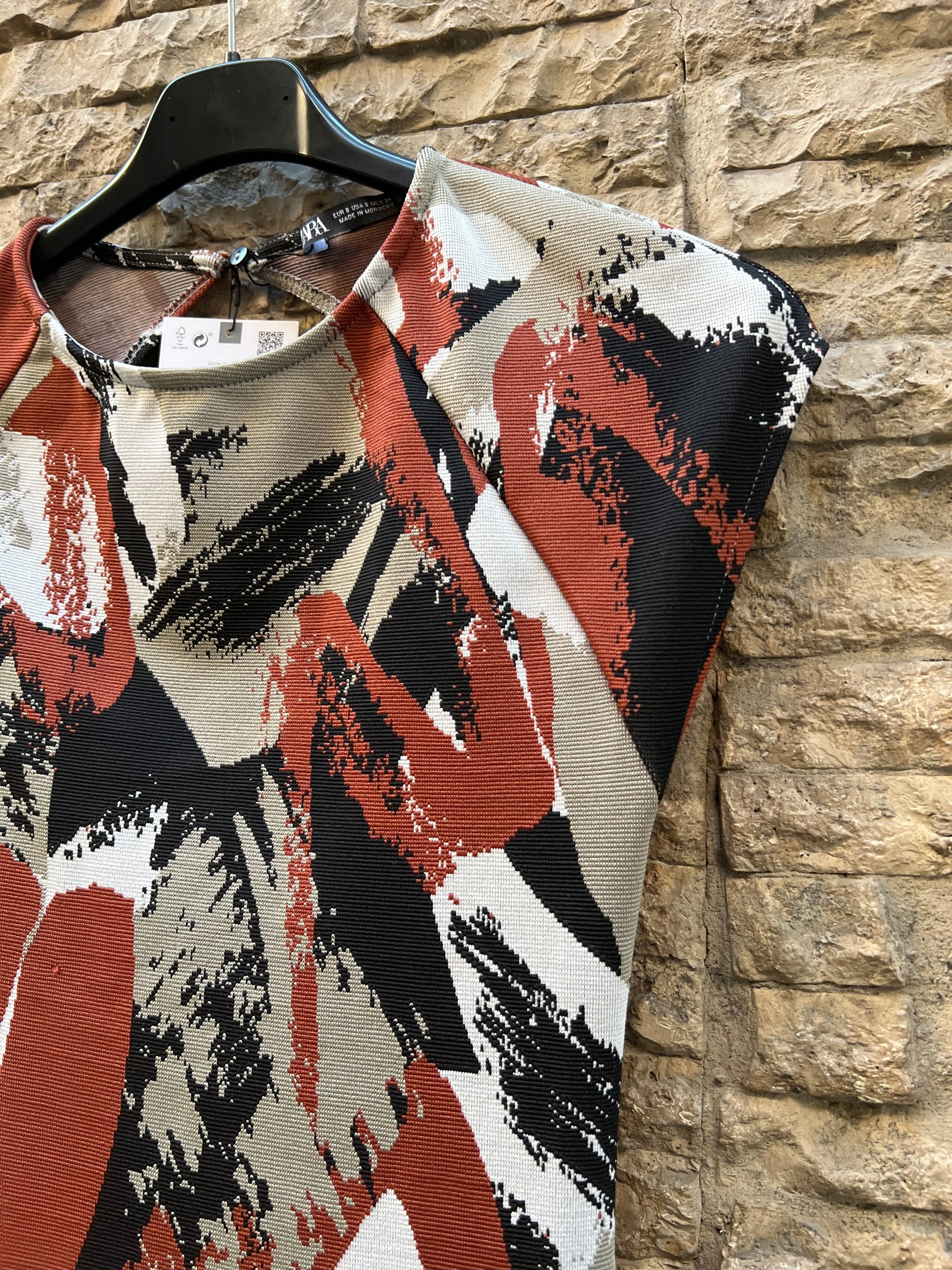 ZARA. Vestido estampado entallado abstracto