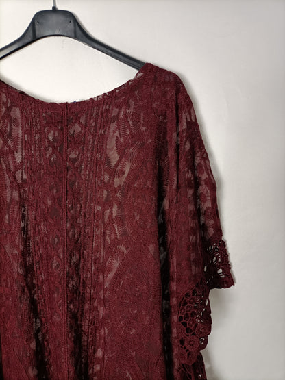 ZARA. Vestido estilo caftán semi transparente burdeos. T M