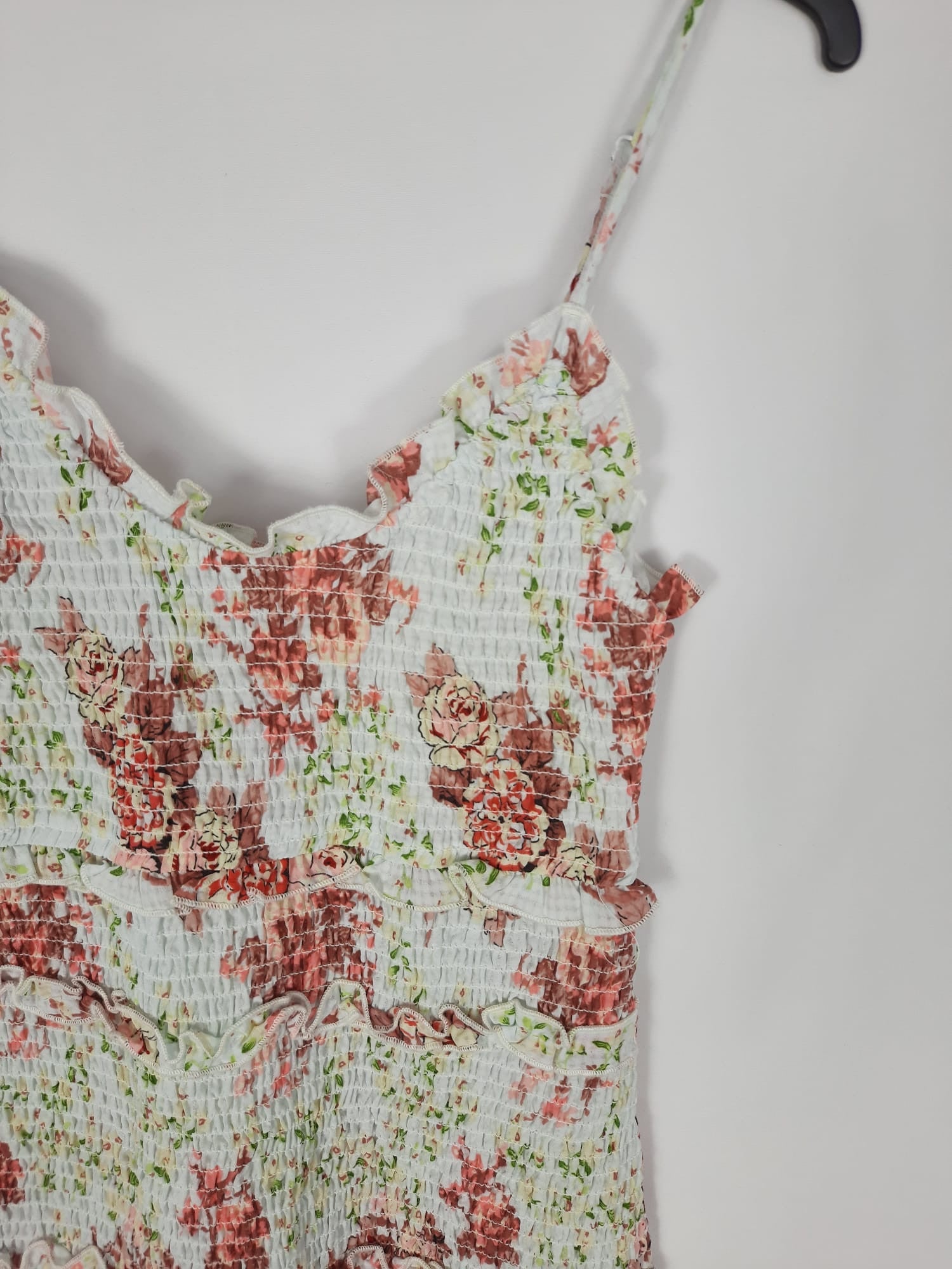 Vestido azul de flores de nido de abeja. Elástico y ajustado. Largo89 cm