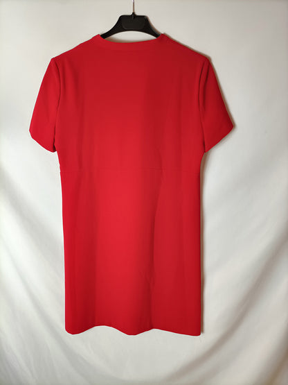 Vestido fluido rojo lazada. Tiene hombreras finas. Tejido no elástico. Cremallera lateral