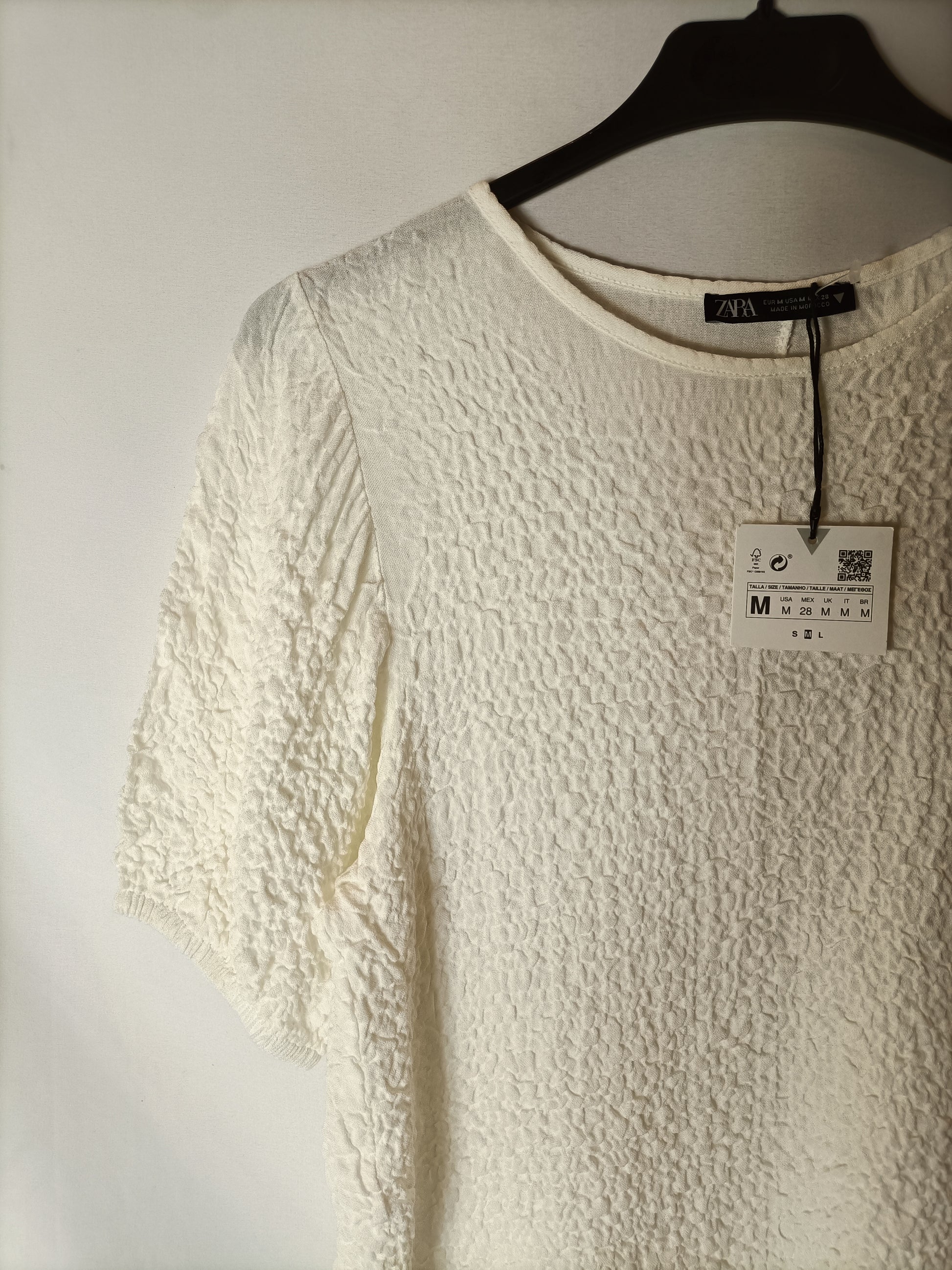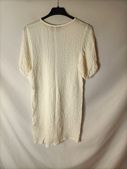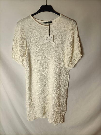 ZARA. Vestido fruncido blanco T.m