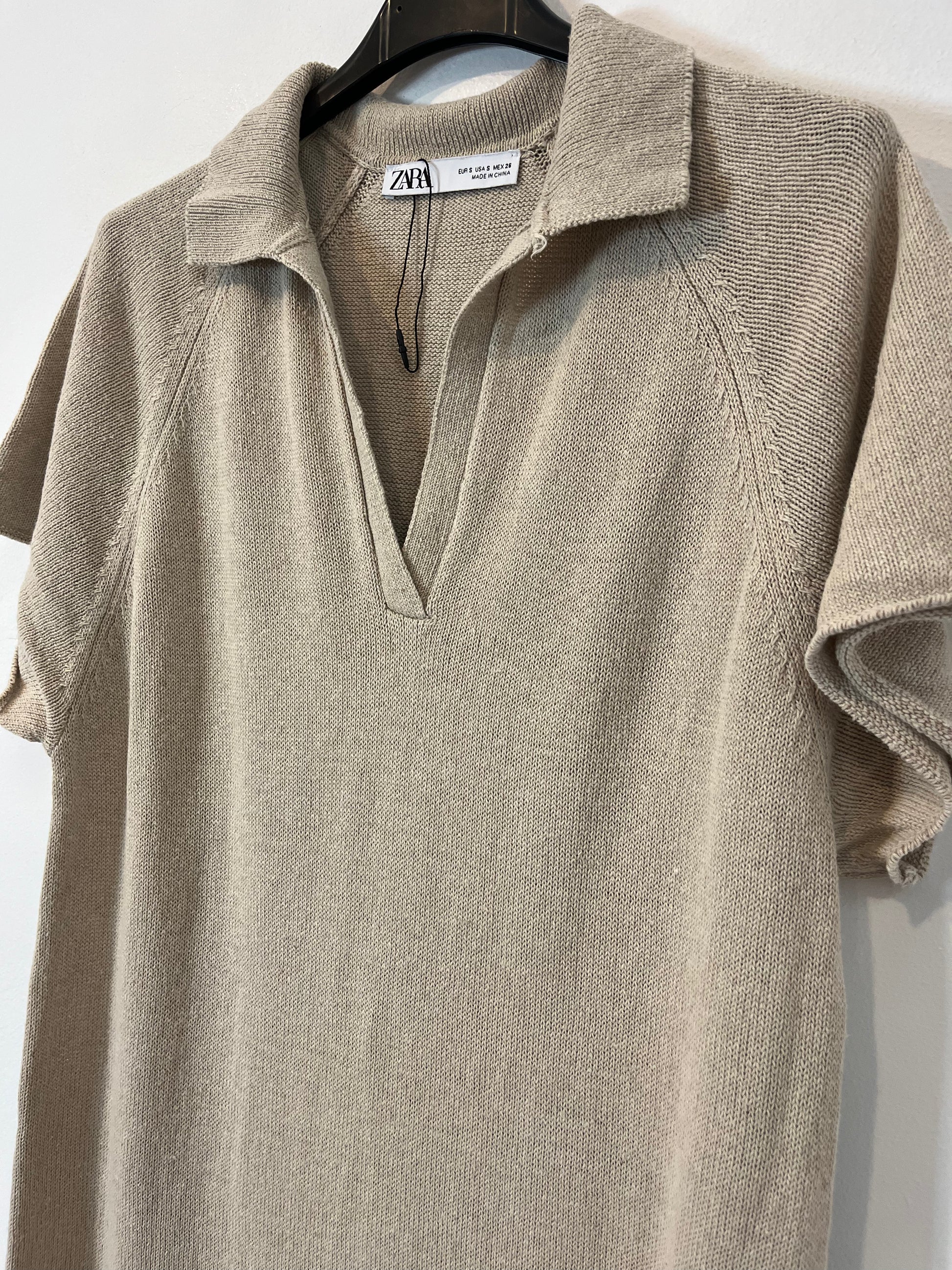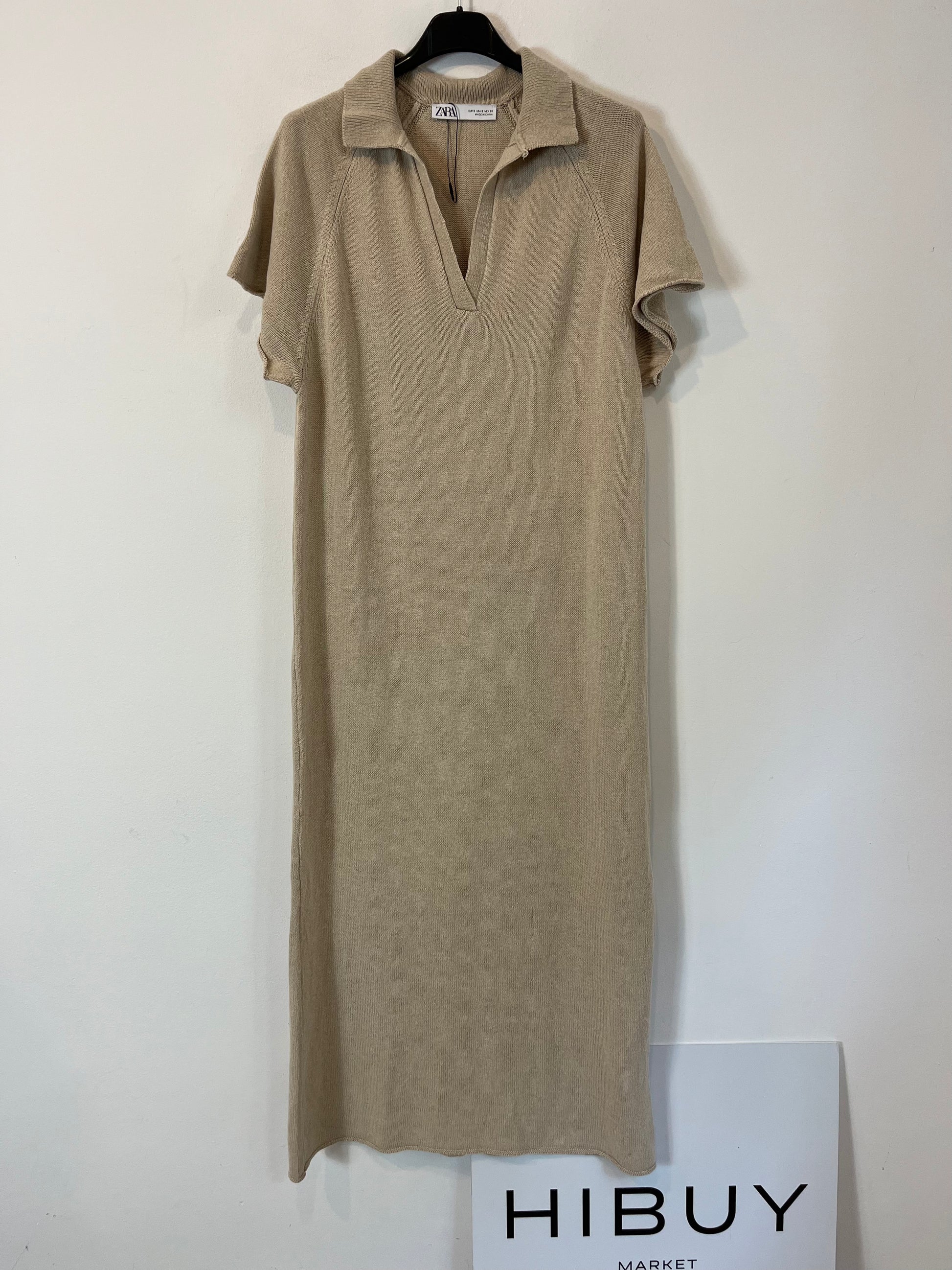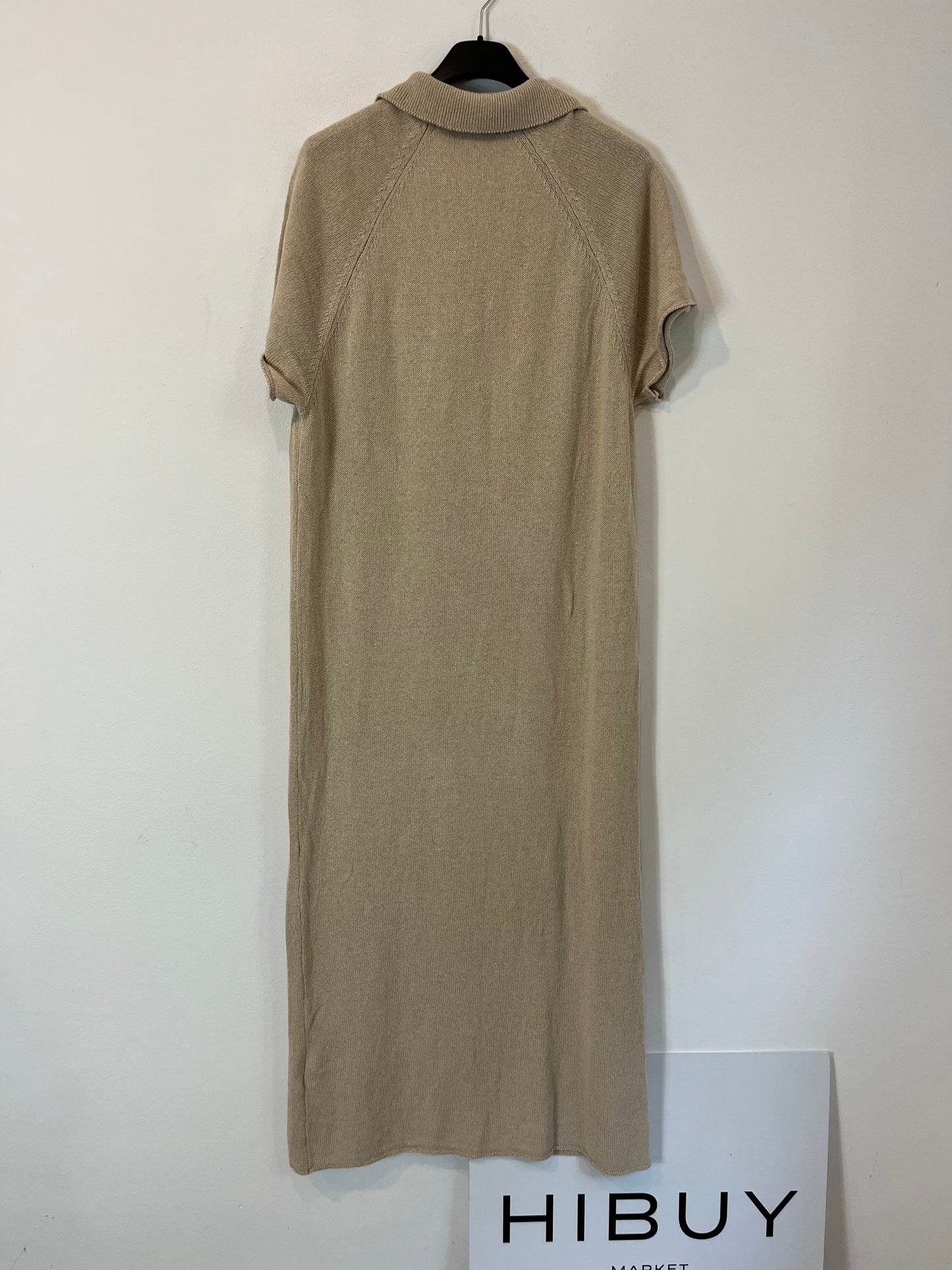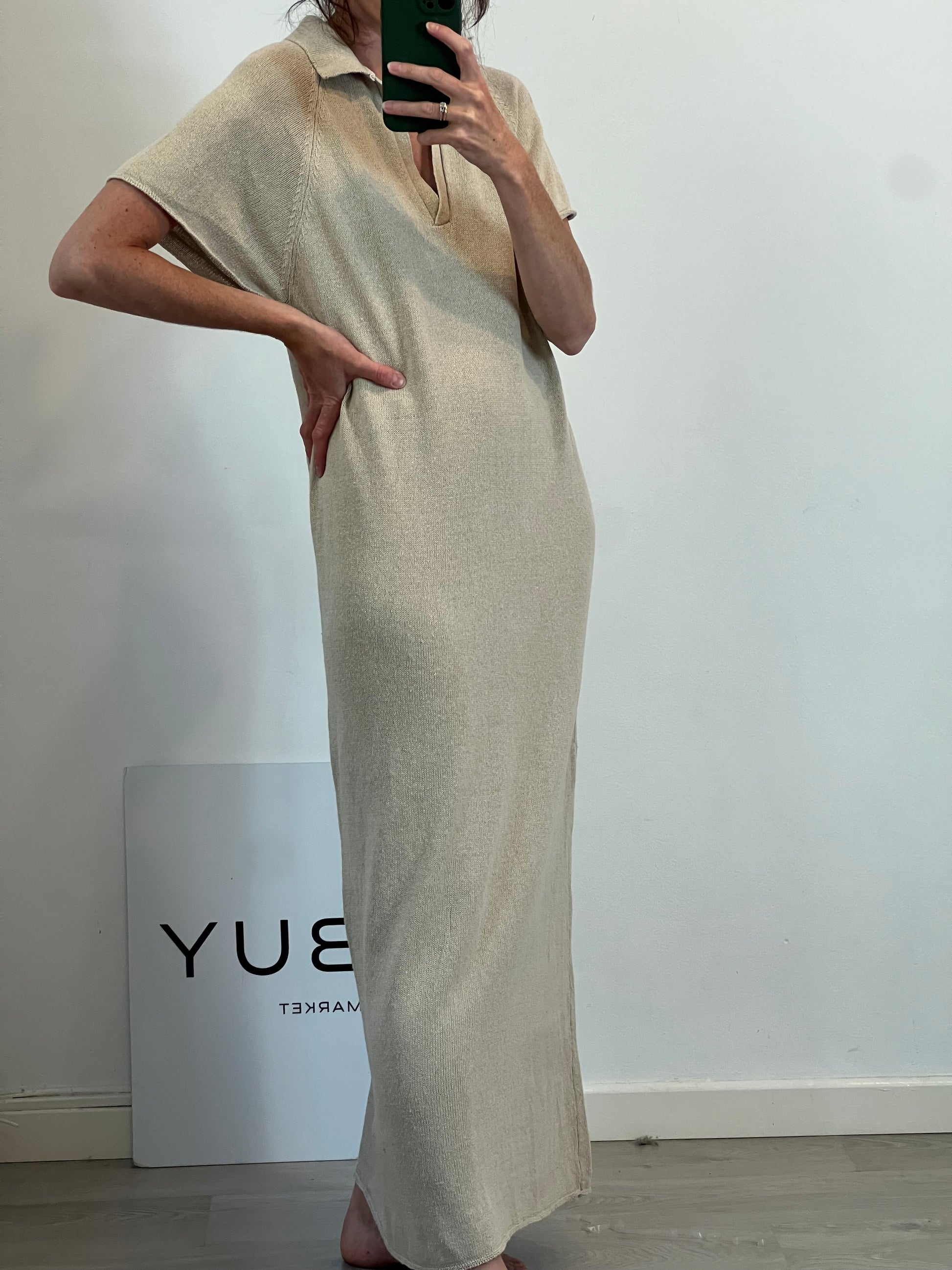 Vestido largo beige lino y algodón. Largo 128 cm.