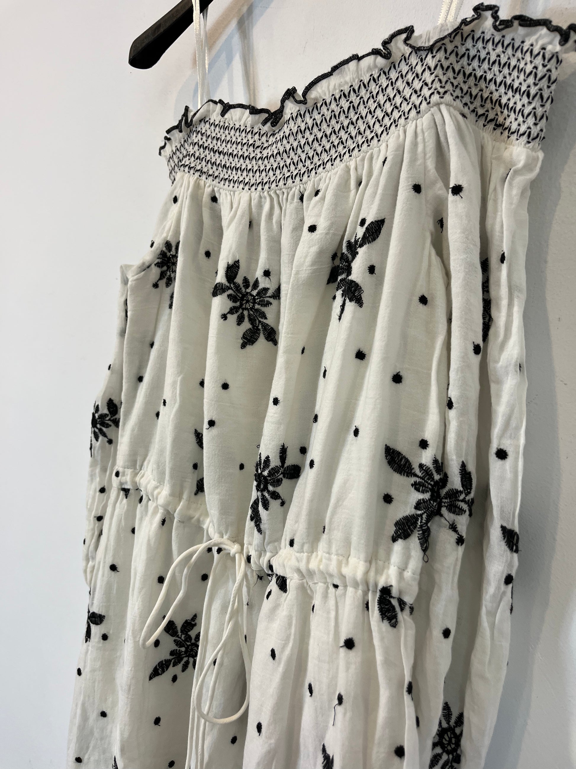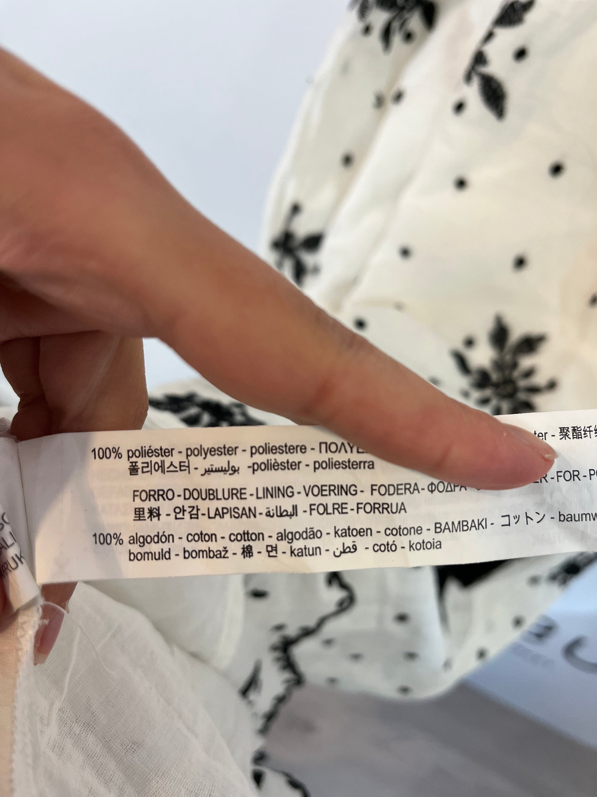 100% algodón. Hombros elásticos. Largo 119 cm, de sisa a sisa 42 cm.