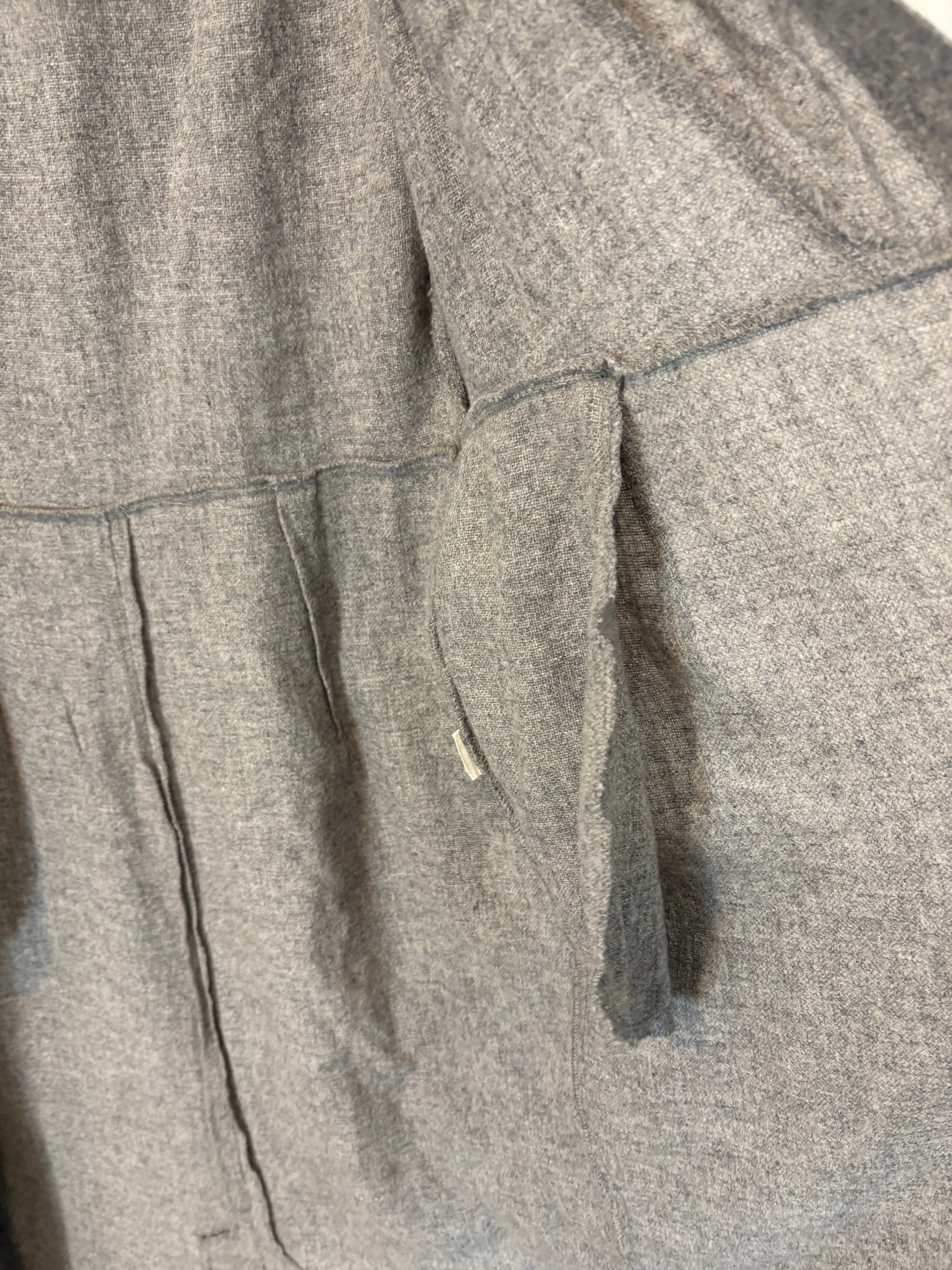 Espalda 47 cm largo 131 cm/ parece lana pero no tiene etiqueta interior/ falta último botón pero no es visible