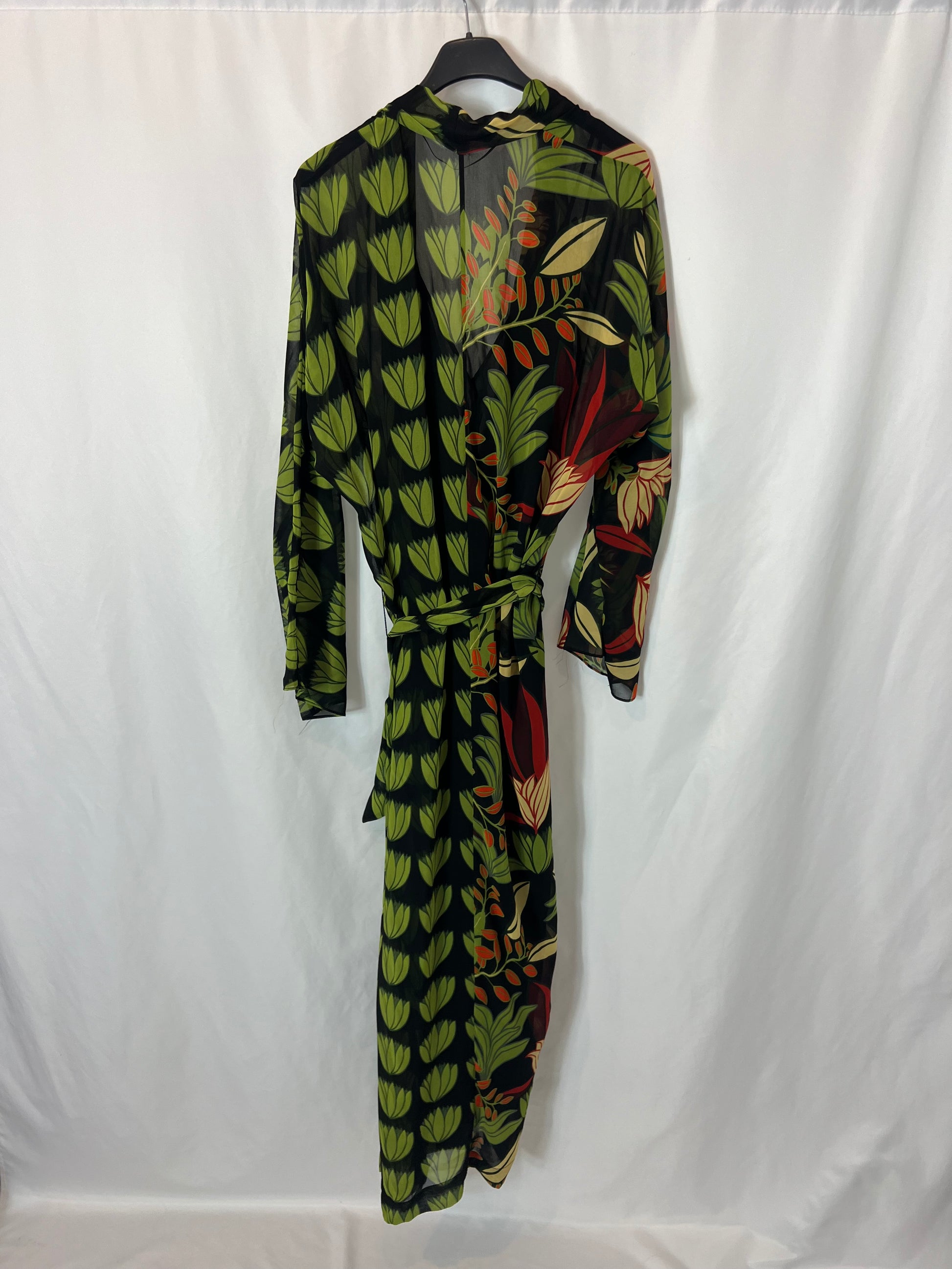 NUEVO CON ETIQUETA. Vestido largo estampado tropical con forro interior