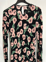 Vestido largo negro estampado flores. Tejido no elástico. Largo 139cm