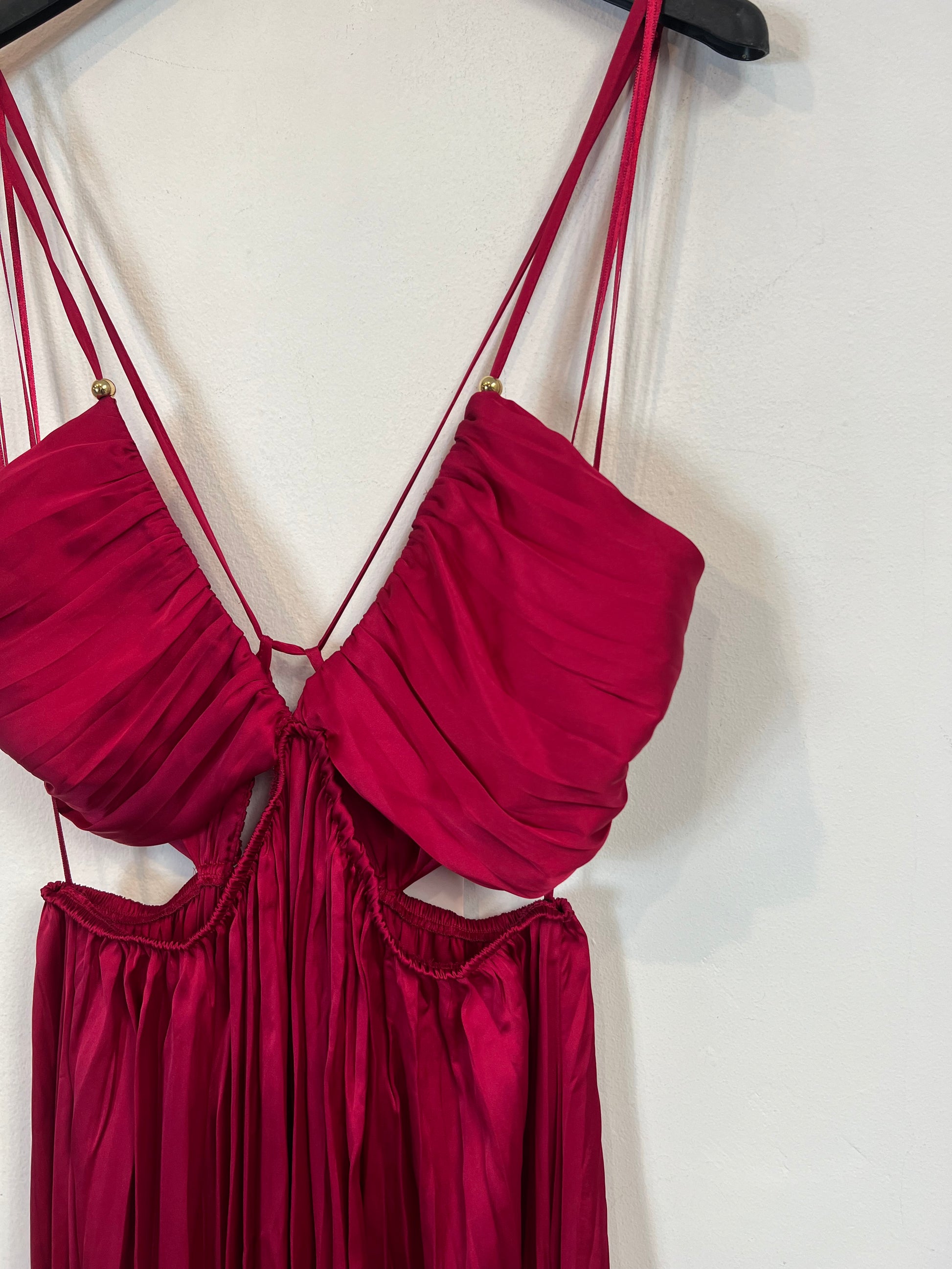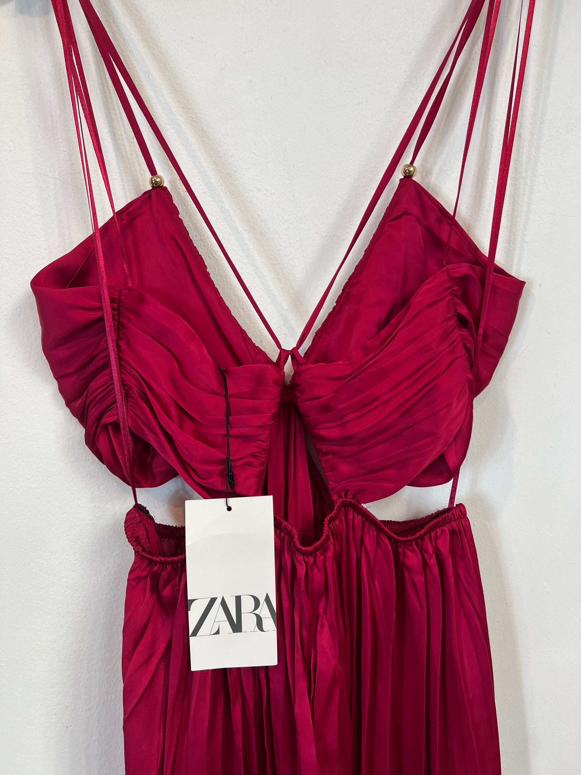 NUEVO CON ETIQUETA. Vestido largo burdeos pisado. Espalda abierta. largo 132 cm.