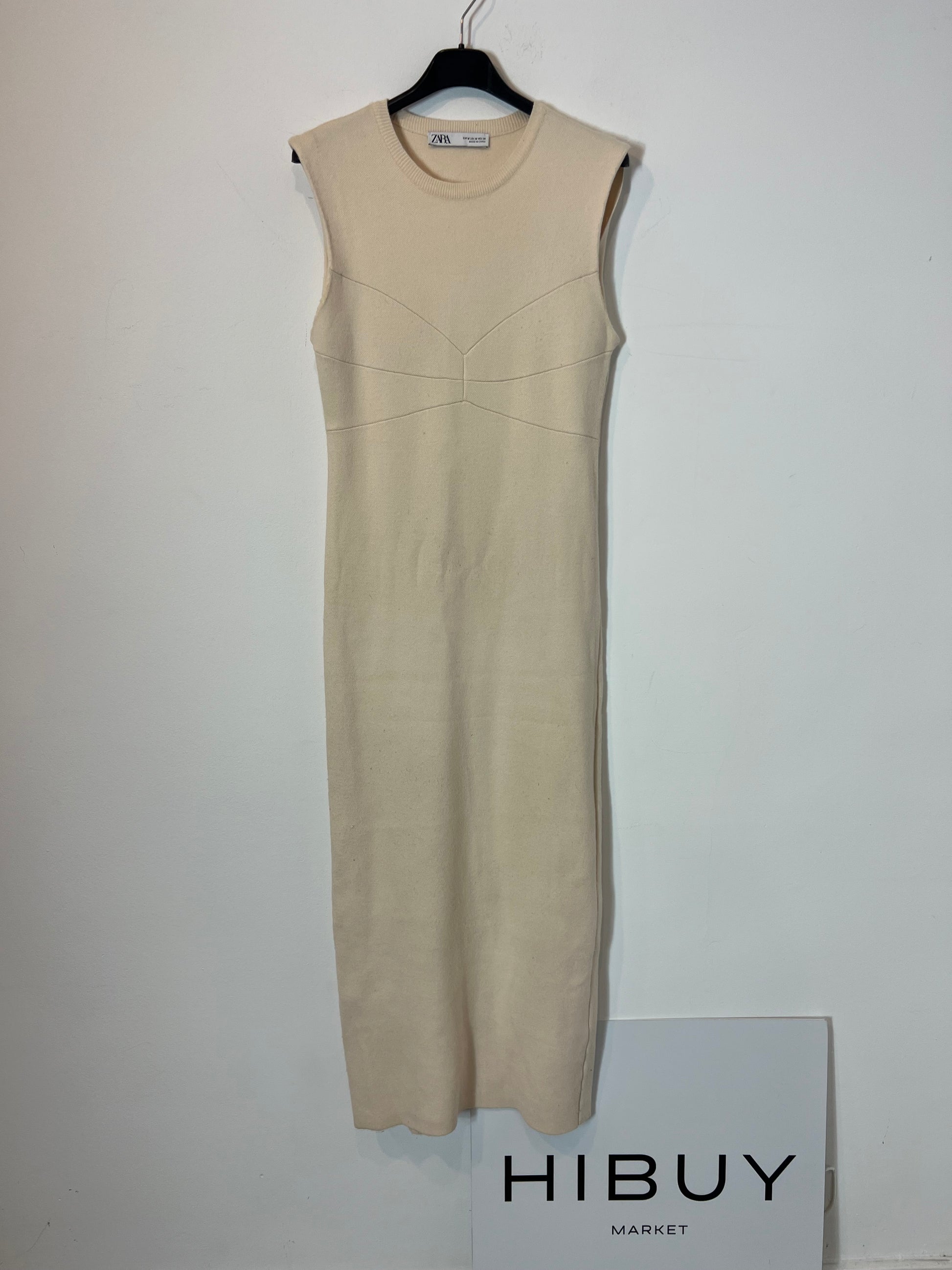 ZARA. Vestido largo punto beige T.m