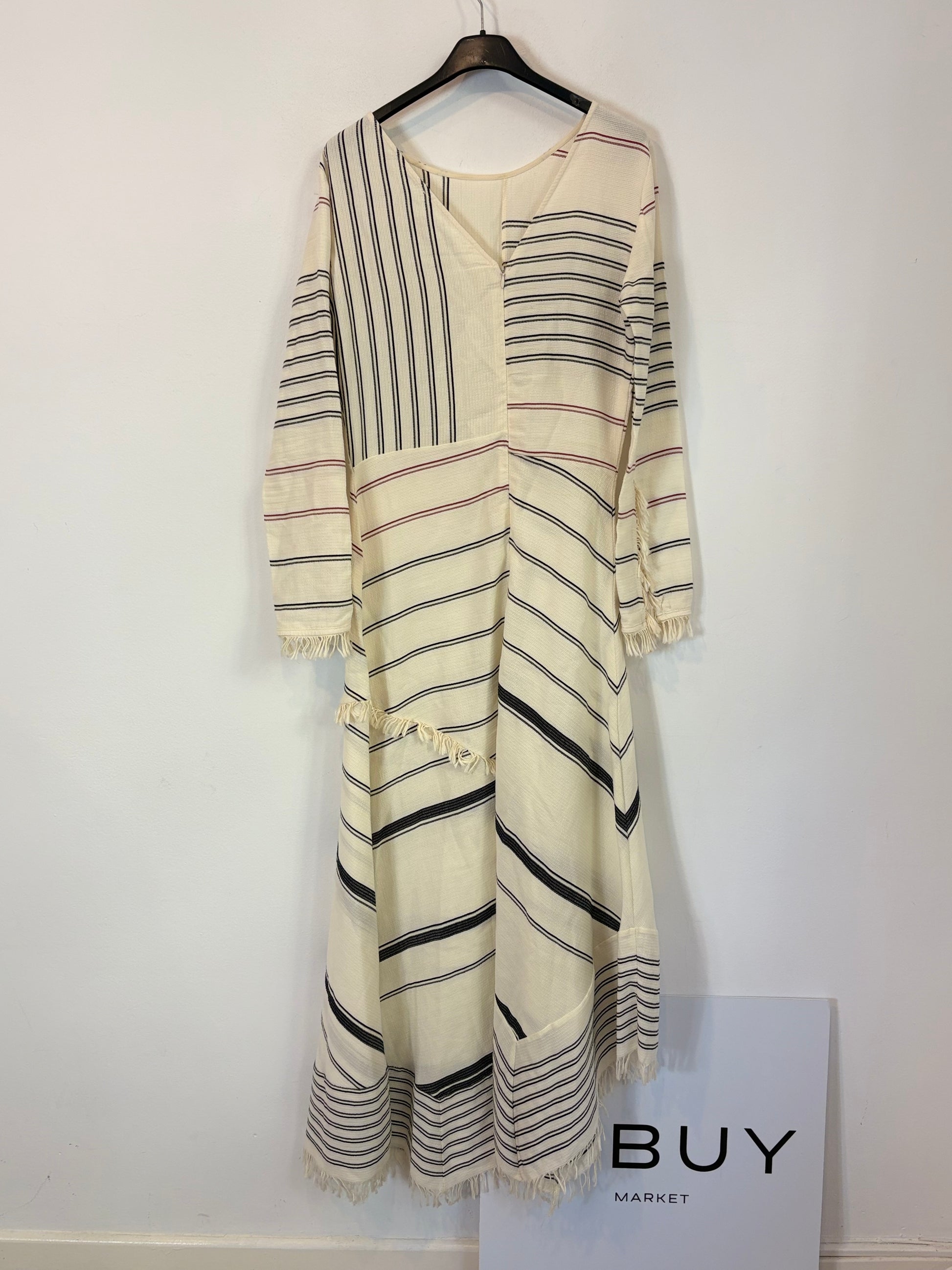 ZARA. Vestido largo rayas textura asimétrico. T S