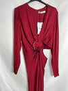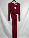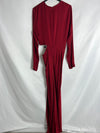 NUEVO CON ETIQUETA. Vestido largo satinado asimétrico detalle abalorio color vino tinto. Tejido no elástico. Cremallera en la espalda