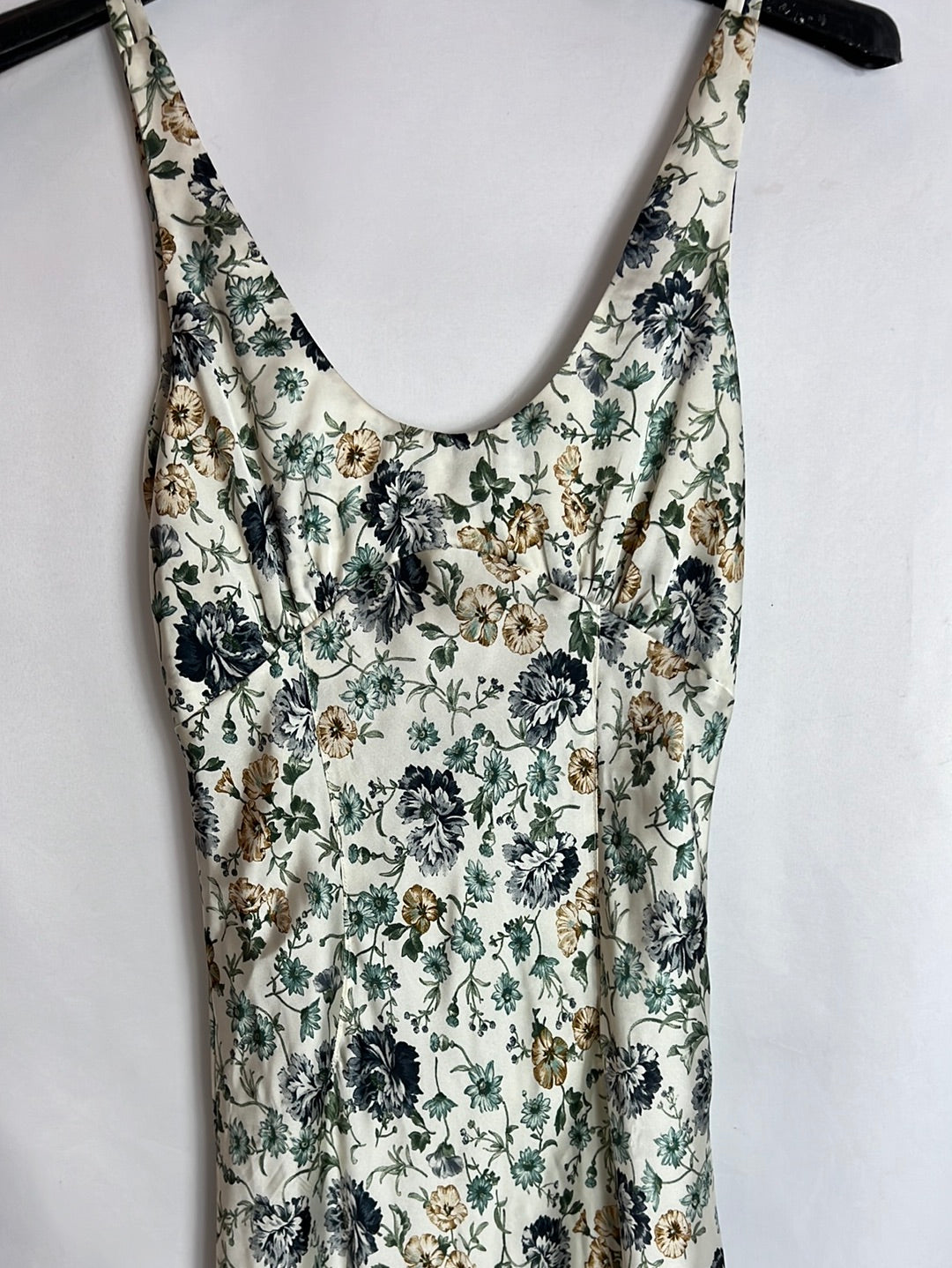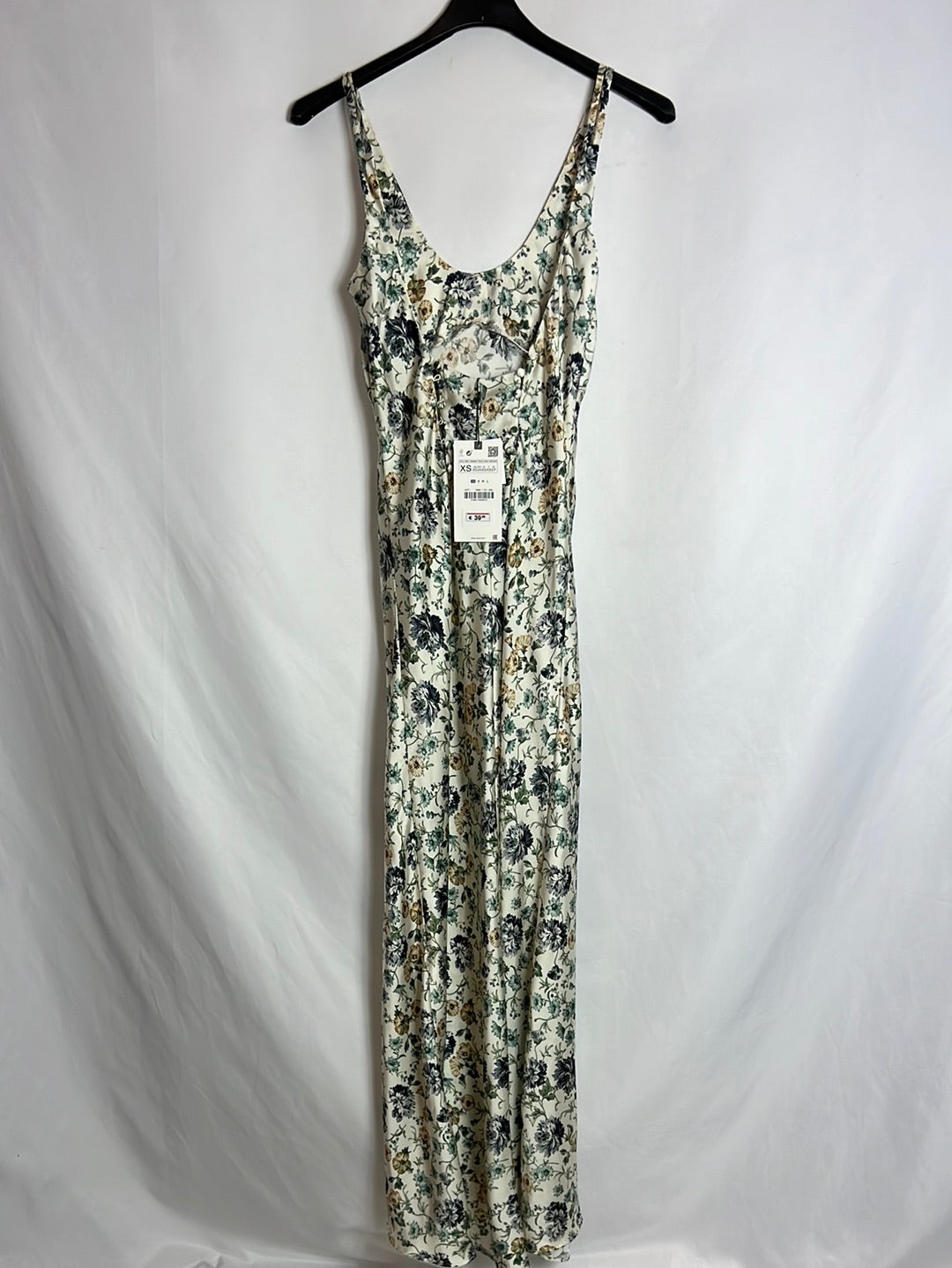 ZARA. Vestido largo satinado flores. T XS