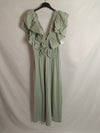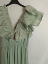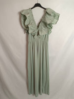 NUEVO CON ETIQUETA. Vestido largo doble textura verde agua con volantes
