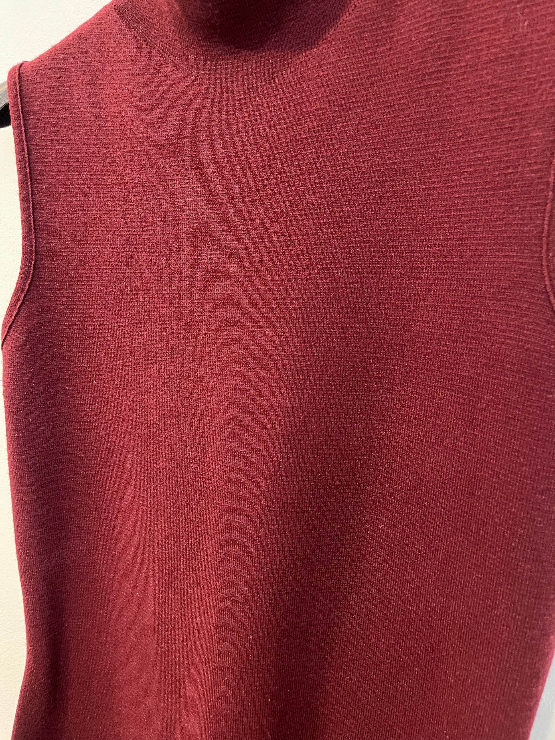 Vestido midi burdeos elástico. Espalda 41 cm, Largo 127 cm.