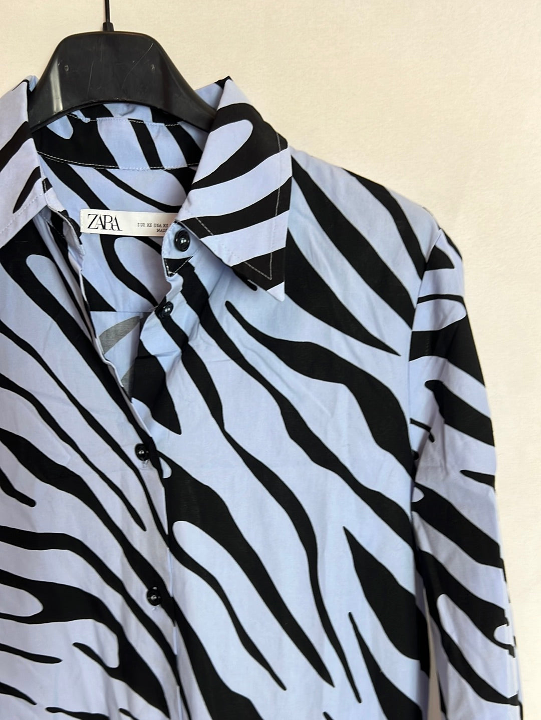 NUEVO SIN USO. Vestido midi camisero azul y negro