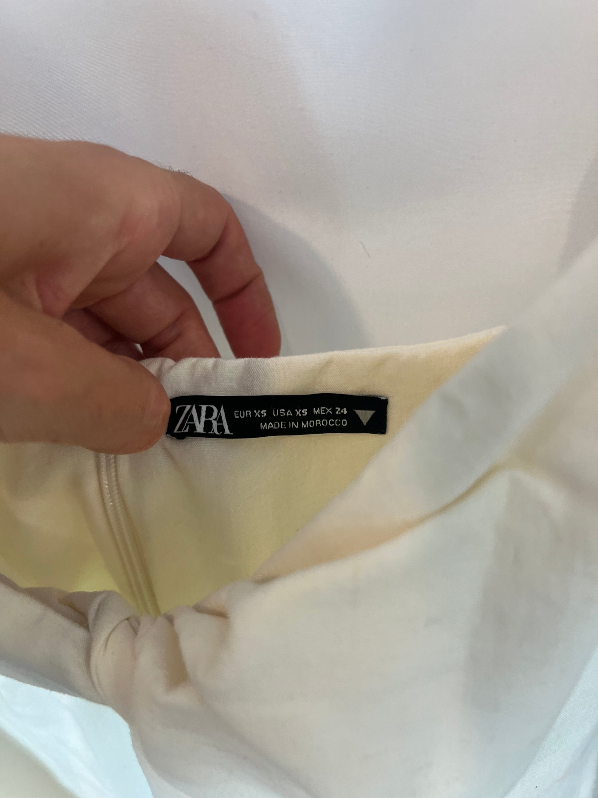 ZARA. Vestido midi color crudo detalle mangas. T XS