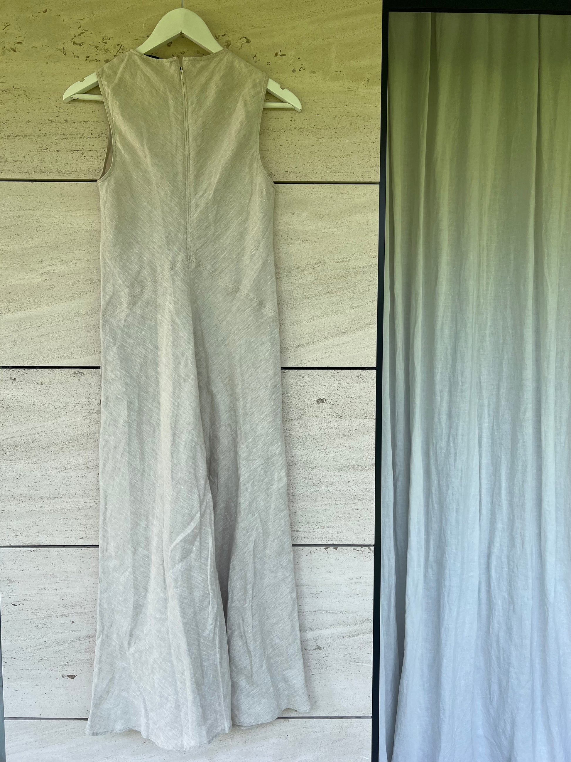NUEVO CON ETIQUETA. Vestido midi lino beige. Espalda 42 cm ,largo 128 cm