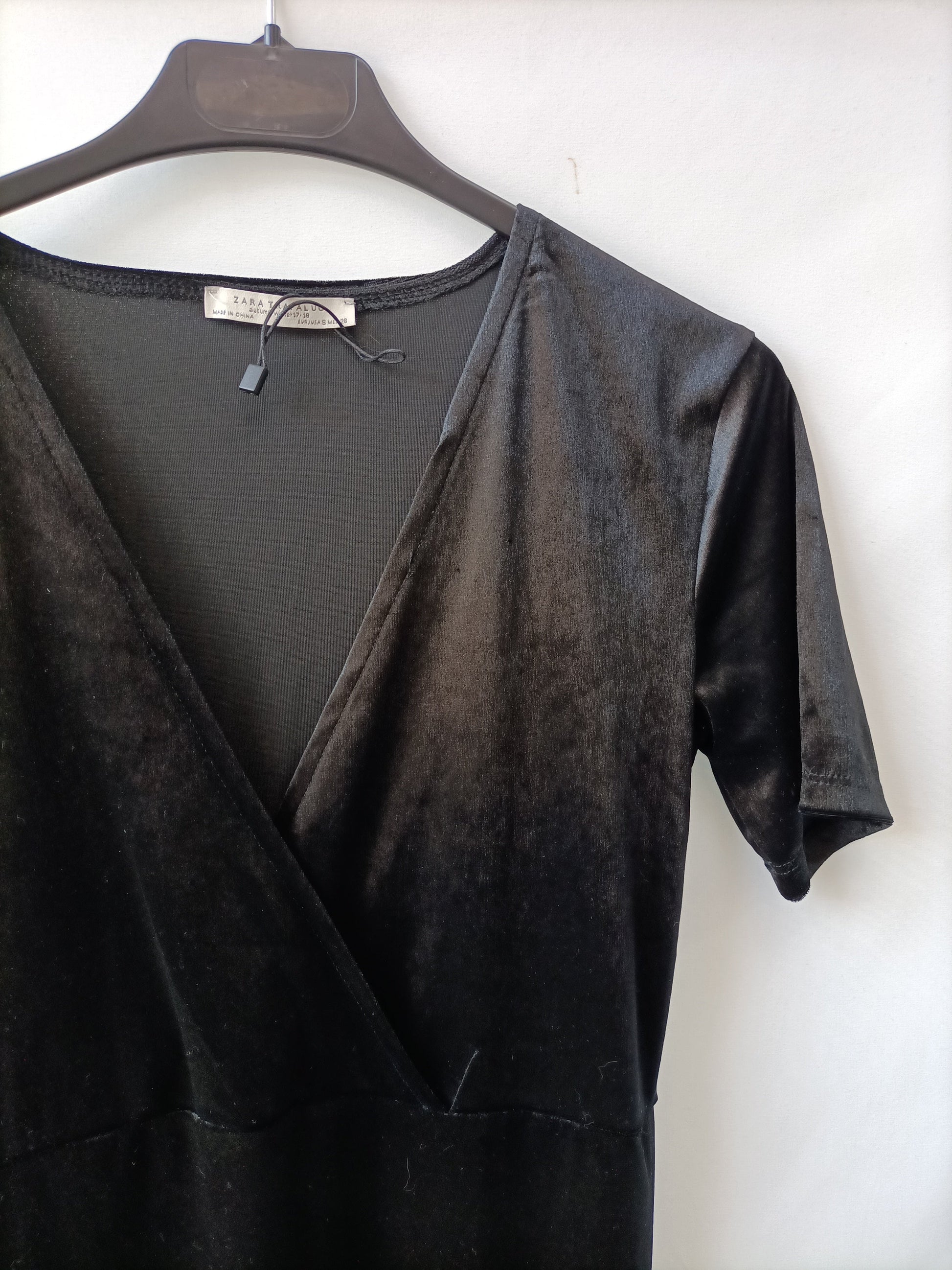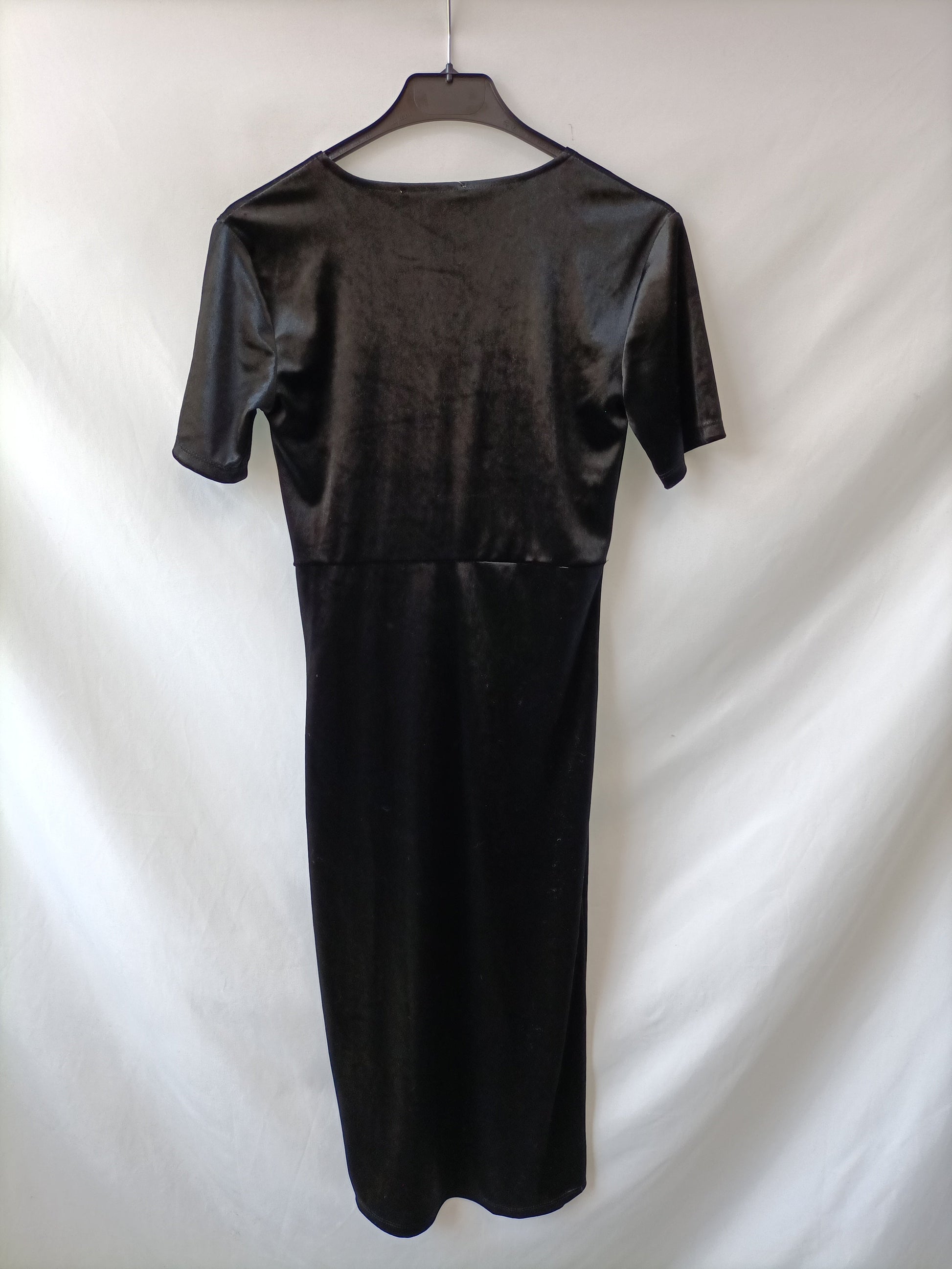 Vestido midi de terciopelo negro. Entallado. Elastico. largo 103 cm