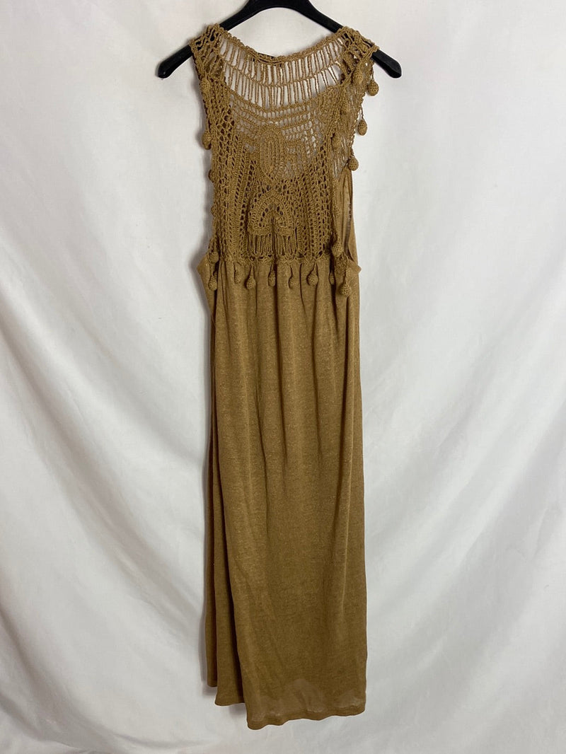 ZARA. Vestido midi punto con con detalles bordados . T.s