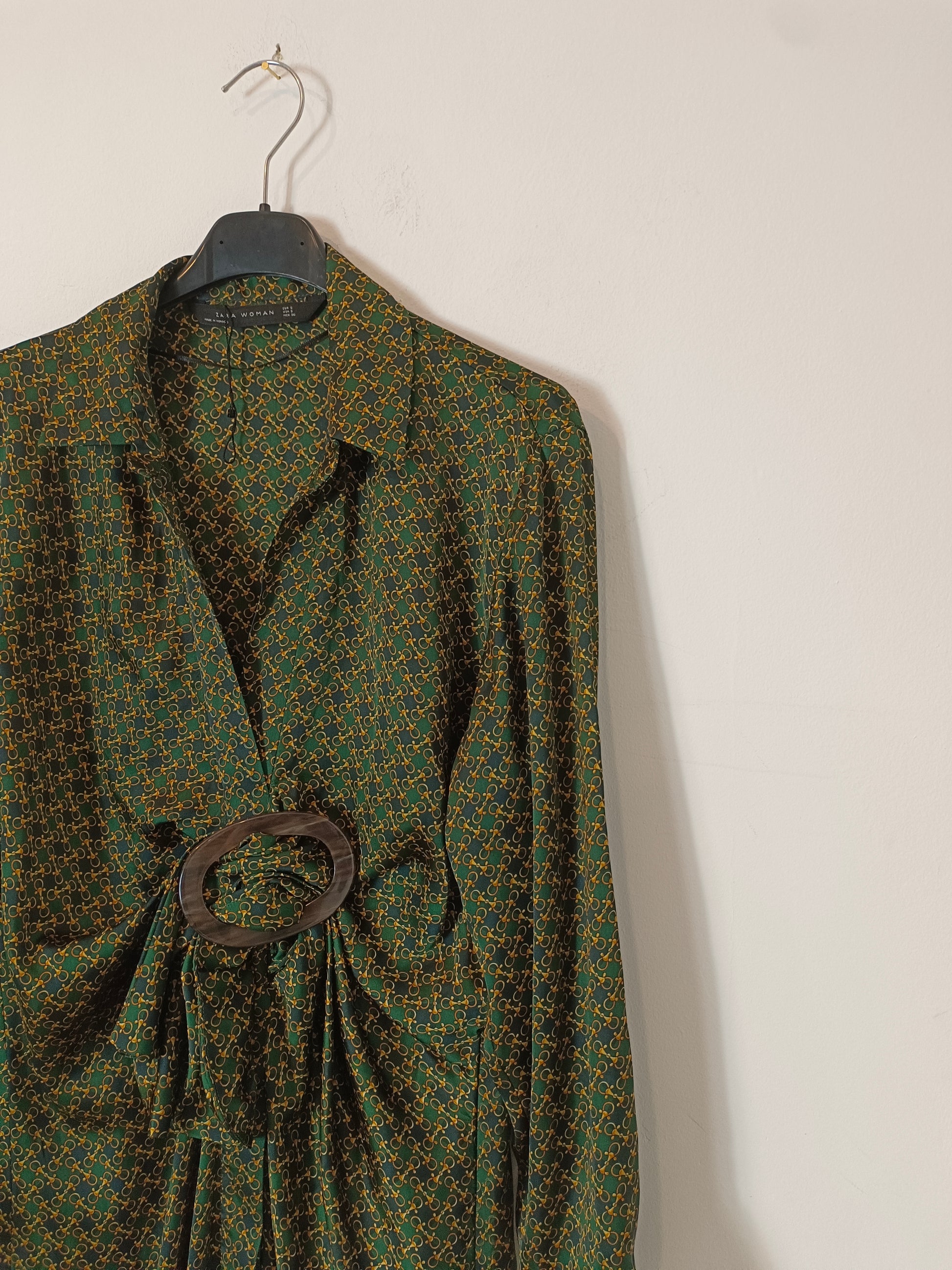 Vestido verde con estampado de cadenas con detalle en la cintura