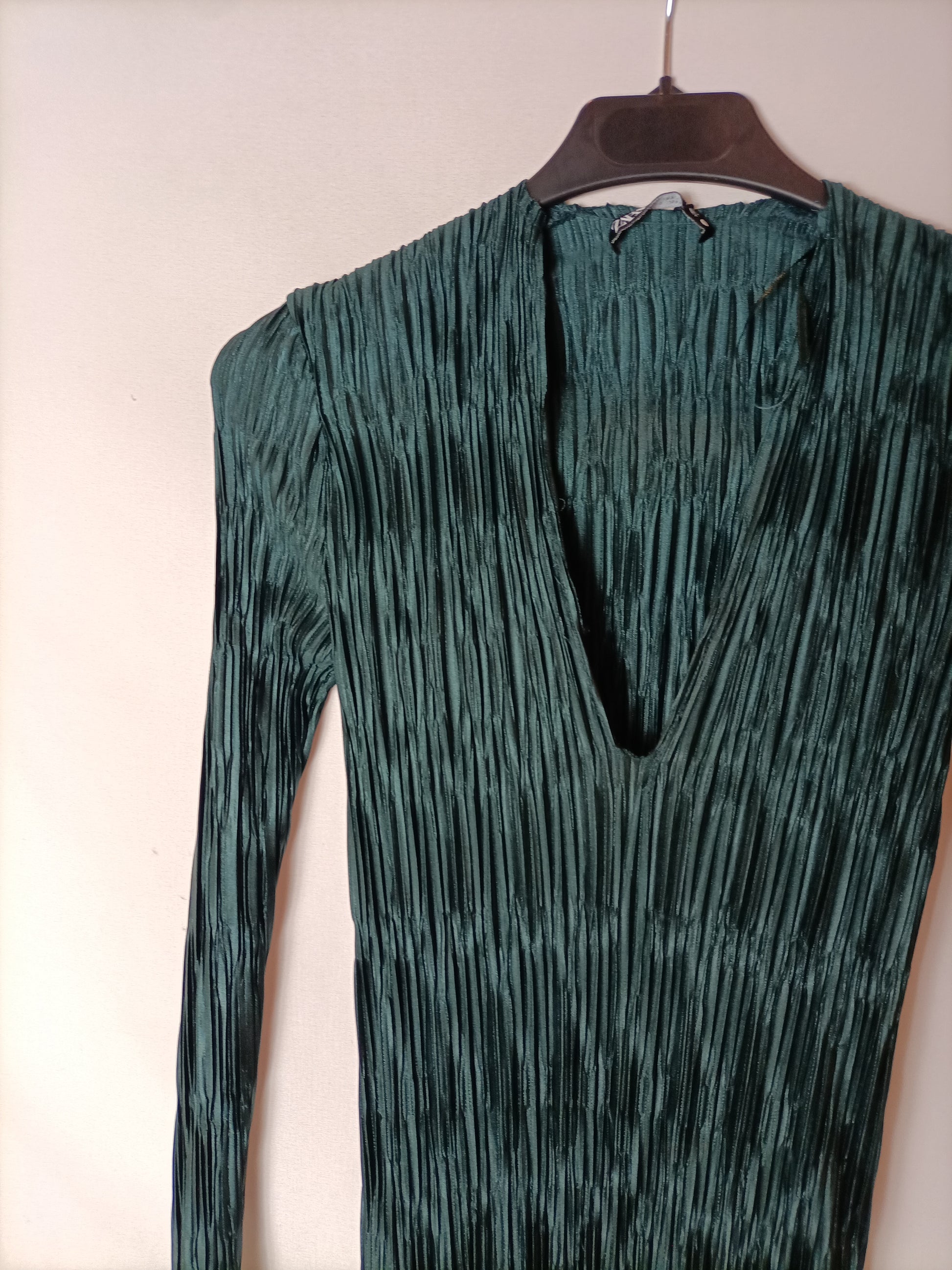 ZARA. Vestido midi verde fruncido. T S (XXS)