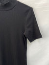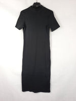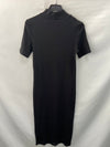 Vestido negro midi, elástico de tejido tipo canalé, ajustado, cuello tortuga. Largo 110 cm