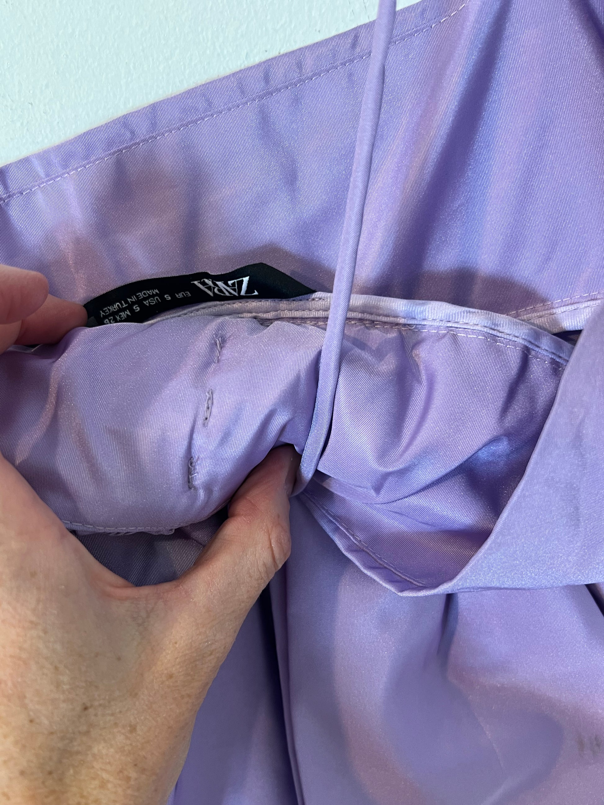 vestido largo morado con doble textura y azada. de sisa a sisa 43 cm , largo 123 cm. No elástico