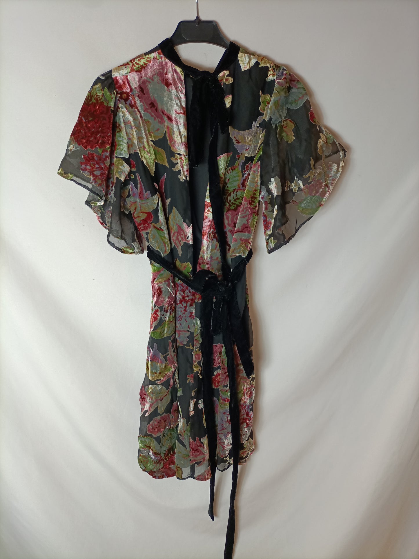 ZARA. Vestido negro estampado terciopelo. T S