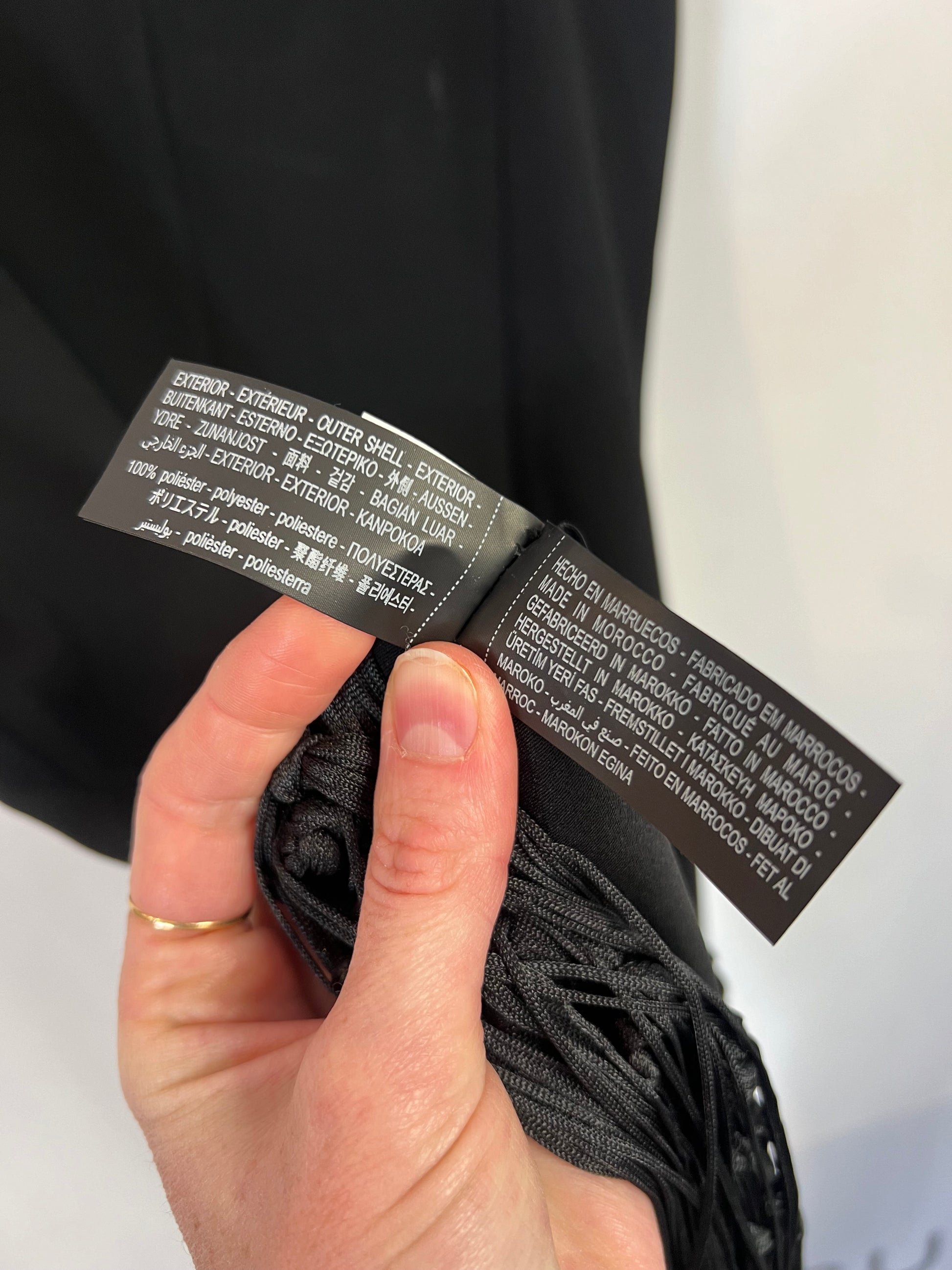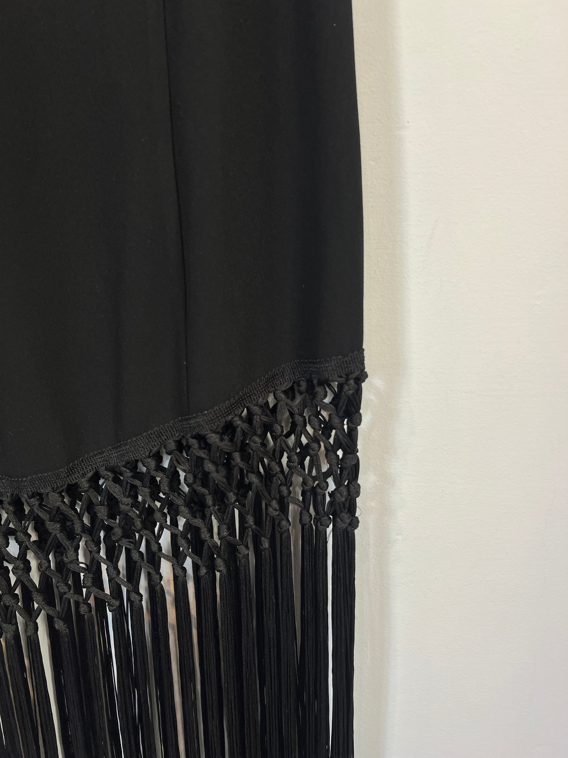 Vestido largo negro con flecos. de sisa a sisa 40 cm largo 120 cm.