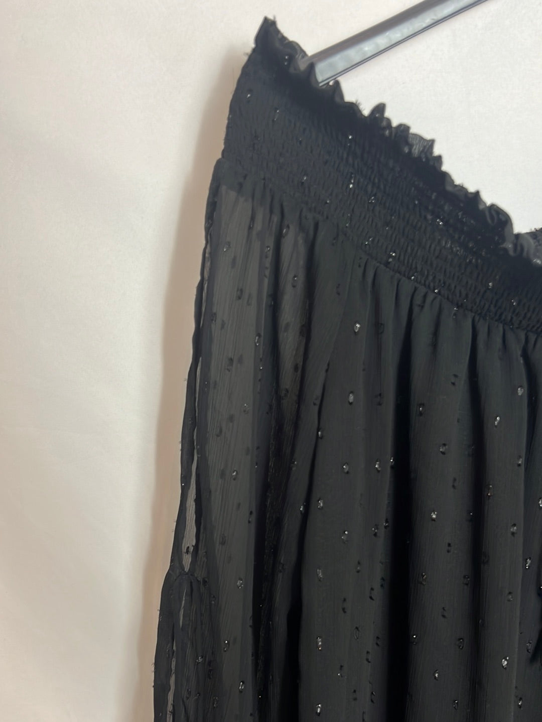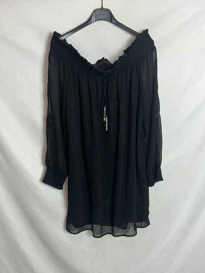 Vestido negro hilos brillo. Hombros al aire. Largo 78cm