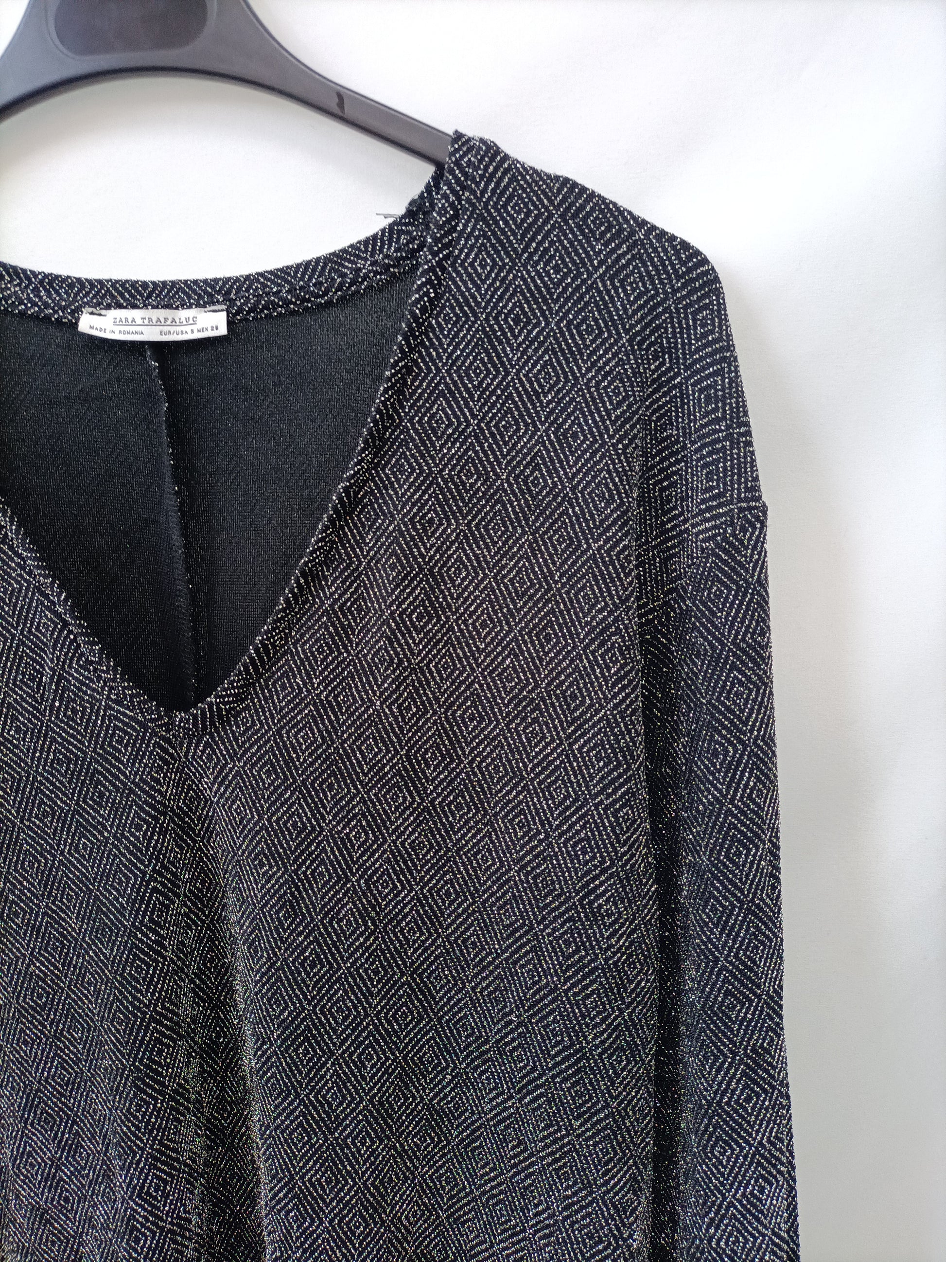 ZARA. Vestido negro hilos T.S