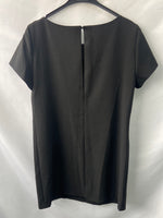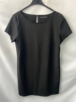 Vestido negro de manga corta fluido. De sisa a sisa 51 cm, largo 86 cm
