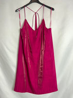 Vestido rosa fluido tirantes. Tejido no elástico. Largo
