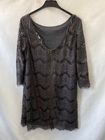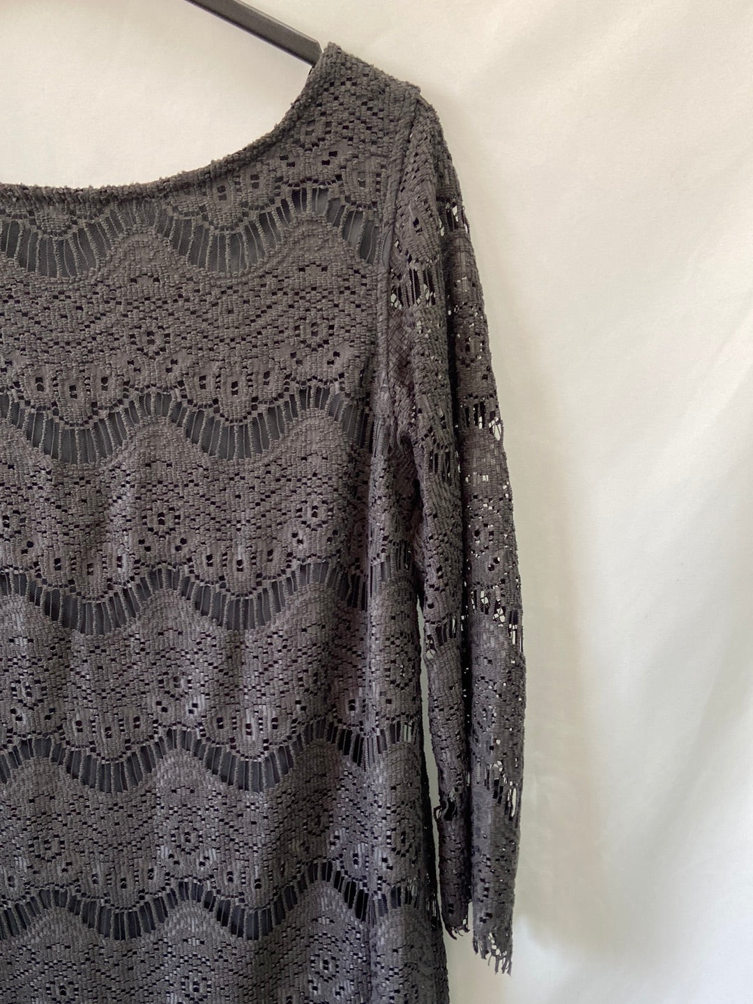 Vestido gris encaje talla L. Semielástico con forro en el cuerpo.