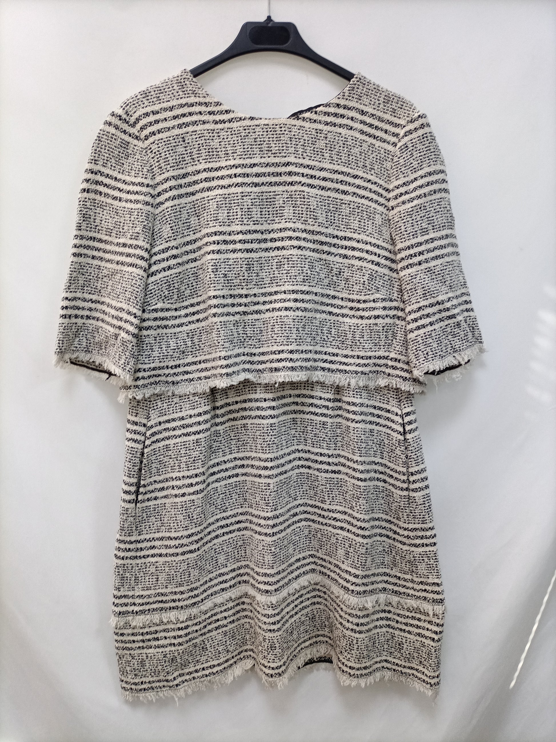 ZARA. Vestido tweed blanco y negro T.l