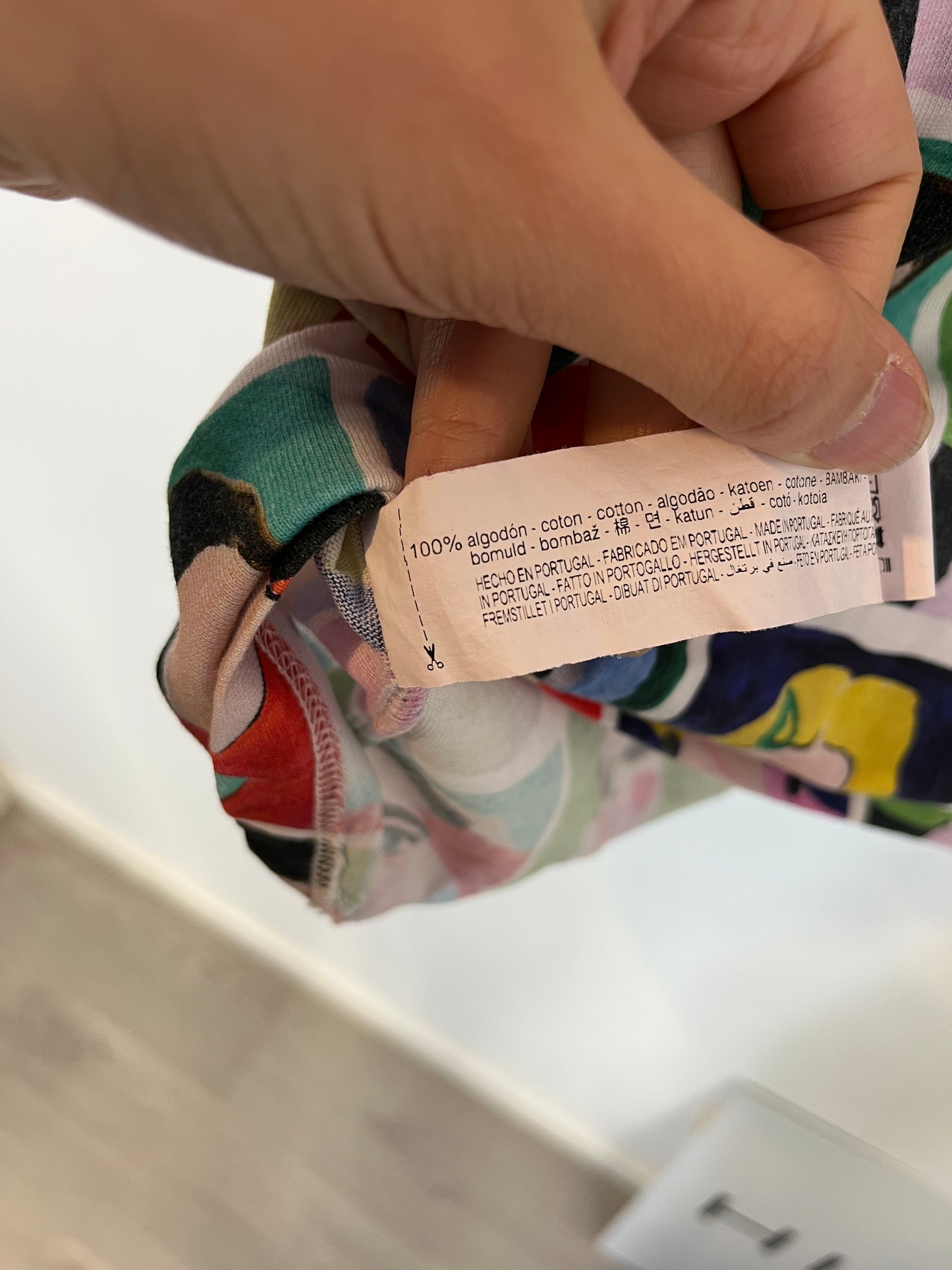 Conjunto caras colores. Camiseta: Espalda 51 cm, largo 62cm, Mallas: Cintura 34 elástica, Largo 40 cm
