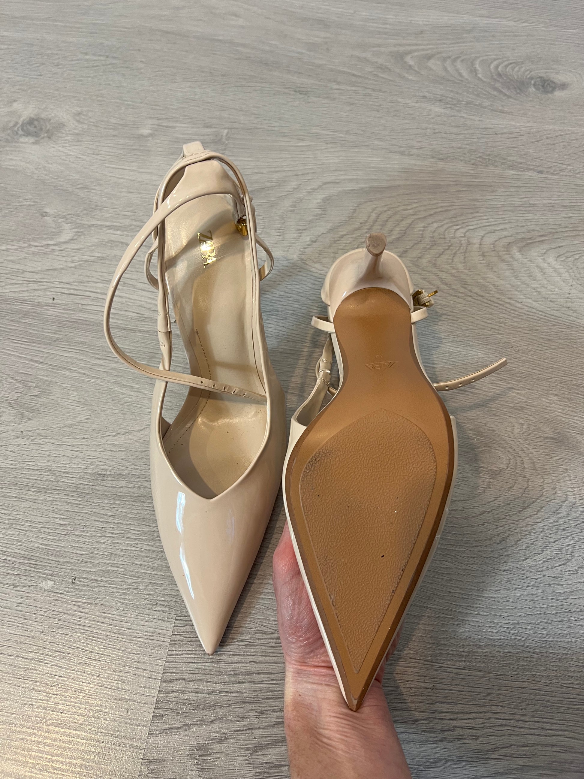 ZARA. Zapato tacón beige charol. T 38