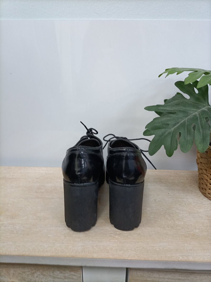 Zapatos negros de charol con cordones y tacon de goma. Tacón 8 cm plataforma 3 cm