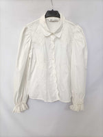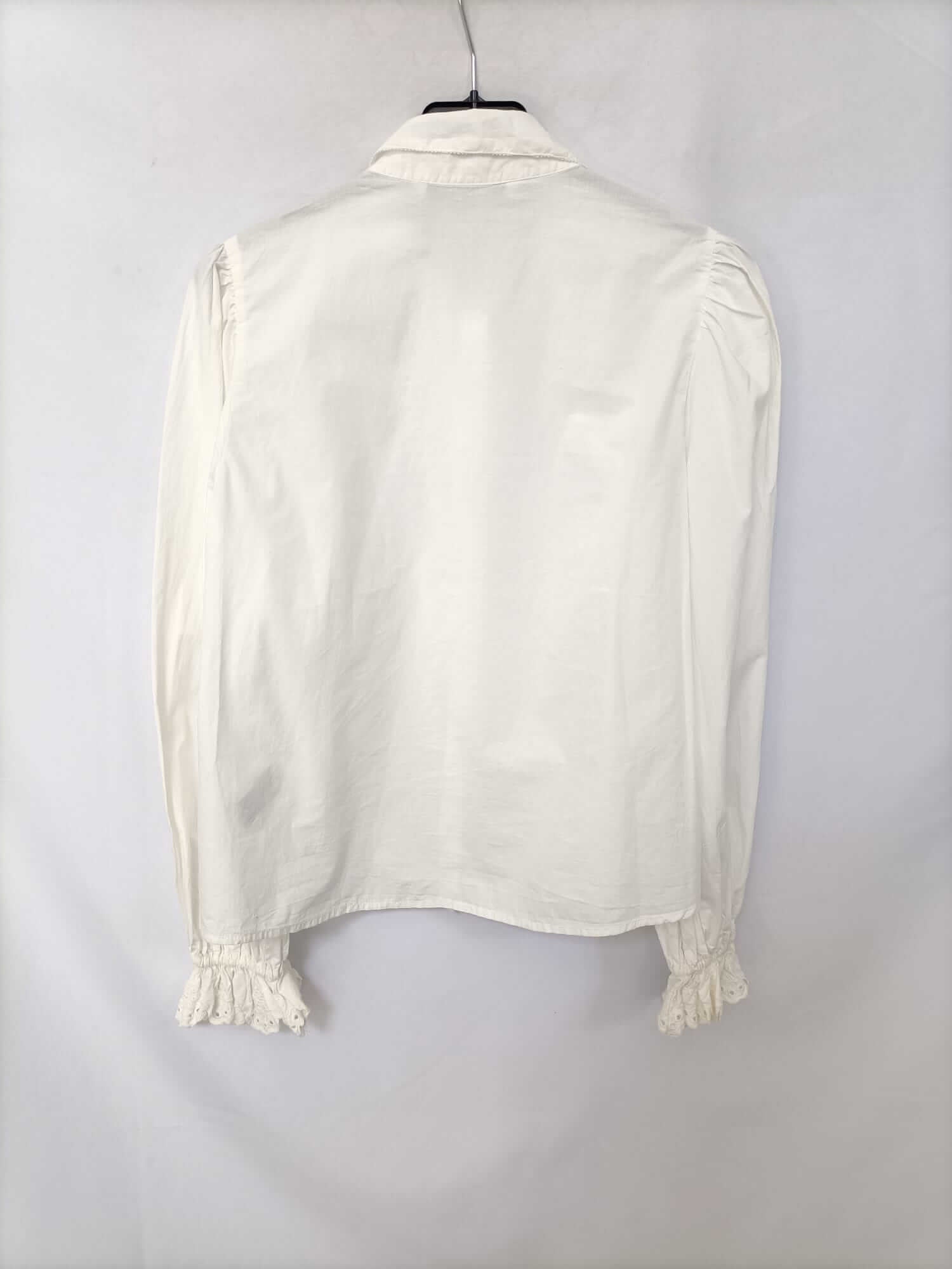 Zara. M. Blusa beige bordadas con las mangas abullonadas con elástico en la muñeca. No elástica. De sisa a sisa 45 cm largo 60 cm