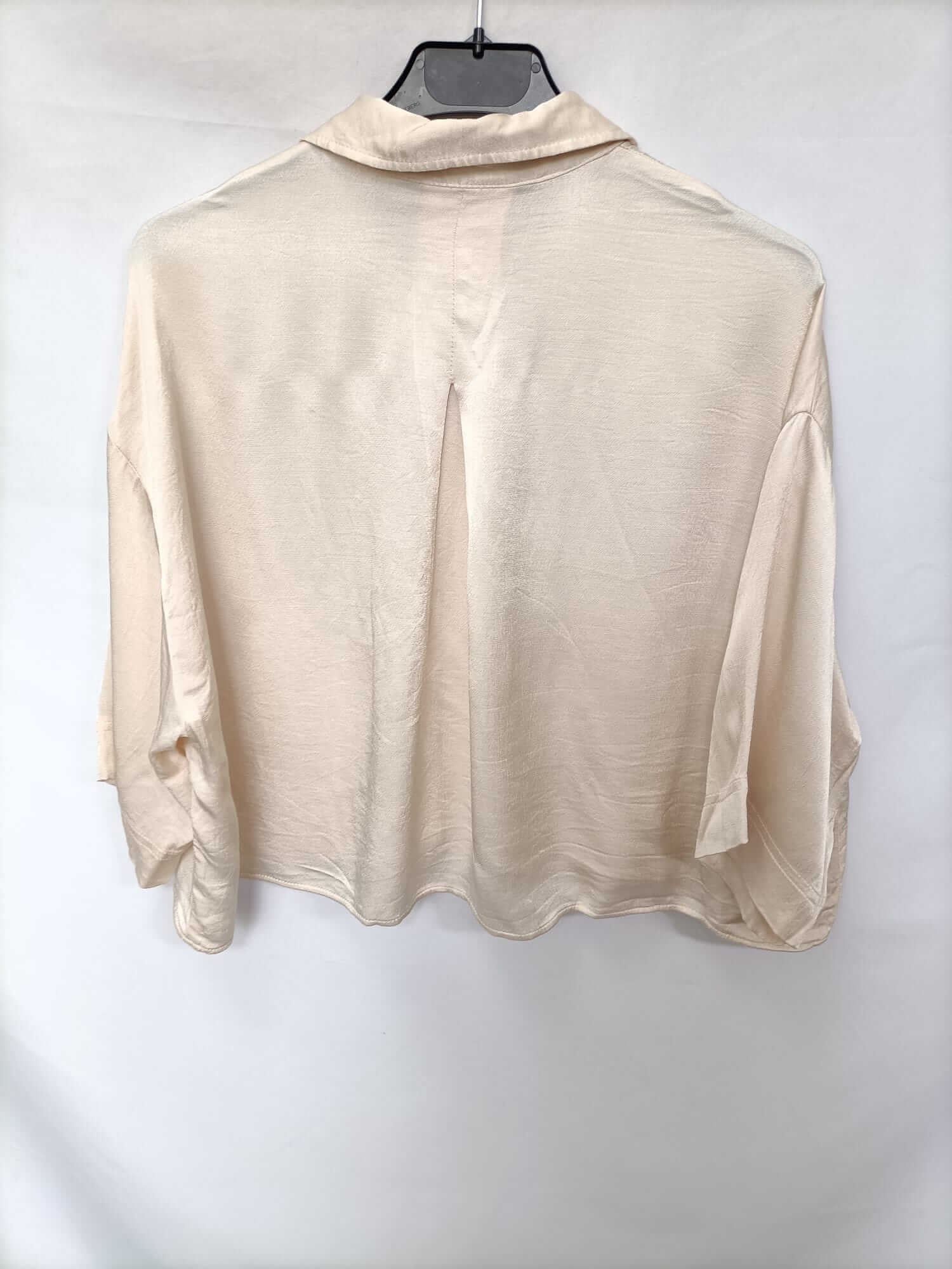 Zara. S. Blusa fluida beige cortita de tejido satinado. Fluida. No elástica. Largo 51 cm