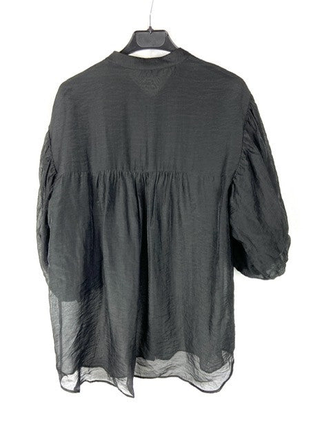 blusa semitransparente botones joya. Mangas 3/4 abullonadas. Oversized. Largo 80 cm