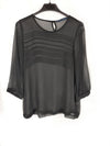 Blusa negra fluida y semitransparente. Parte delantera con dobleces. Semielastica. De sisa a sisa 52 cm largo 63 cm