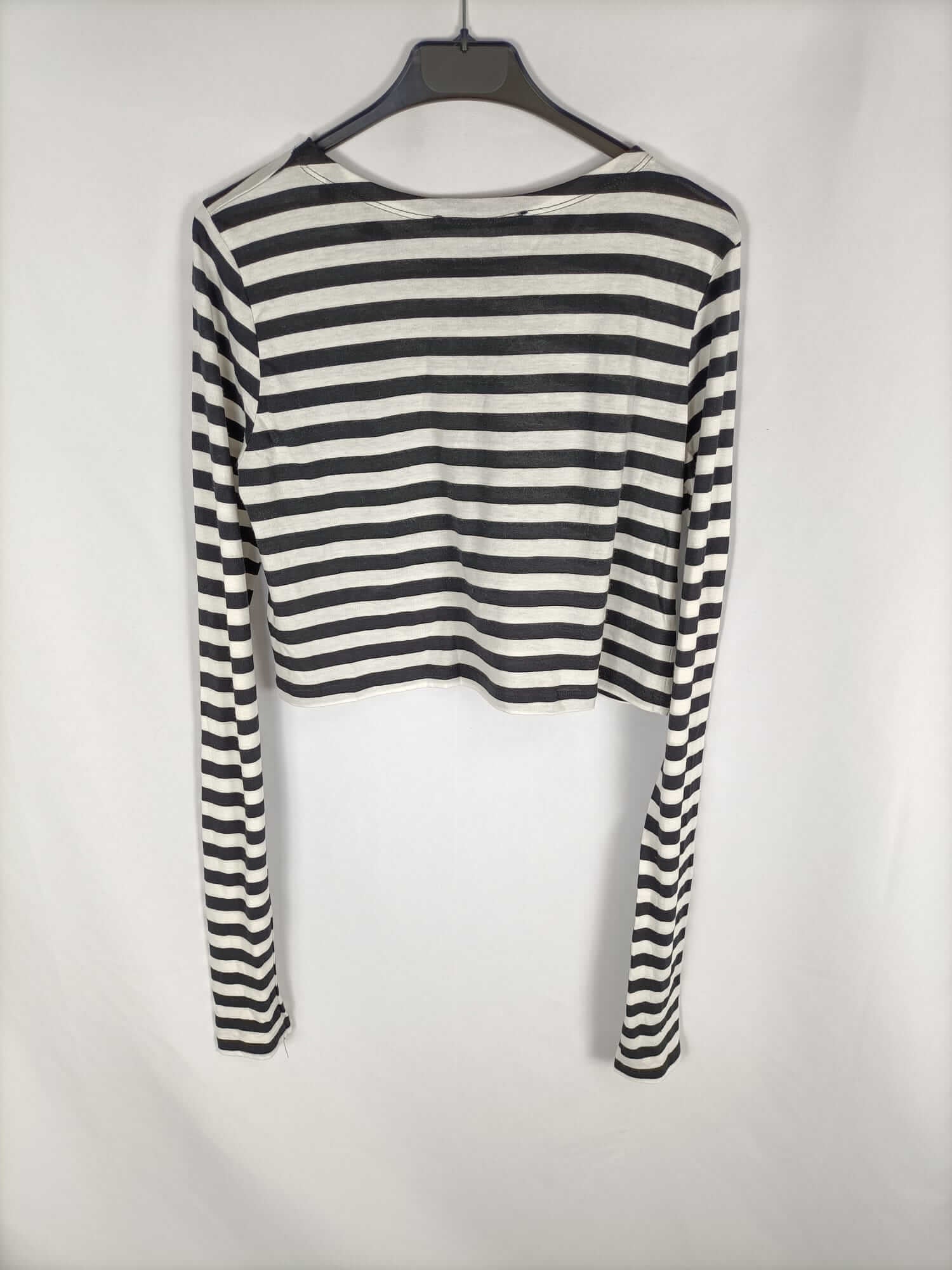 Zara.L. camiseta de rayas negra y blanca cortita. Elástica y fluida. Largo 38 cm