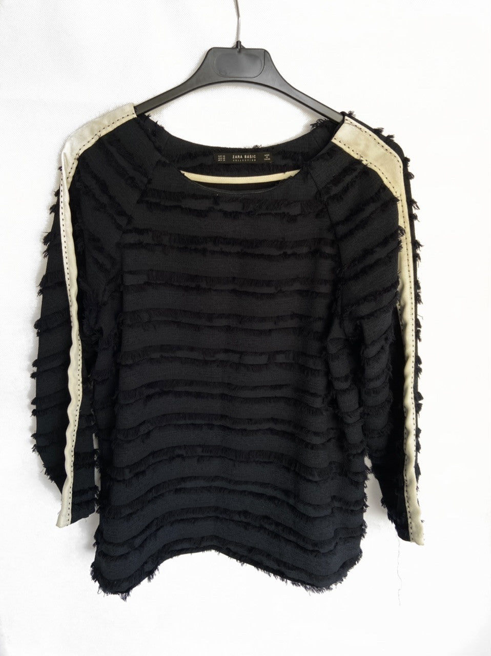 Camiseta negra manga larga como de pelito con raya blanca. Talla XS oversized. de sisa a sisa 50 cm y de largo 60 cm