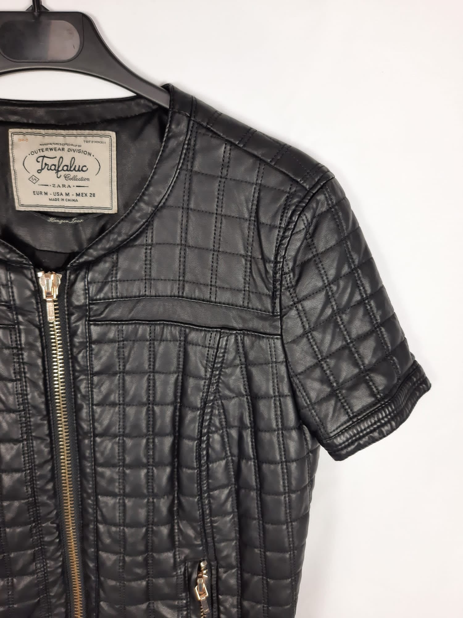 Zara. Cazadora negra de polipiel manga corta ajustada. No elástica. De sisas a sisa 40 cm largo 62 cm