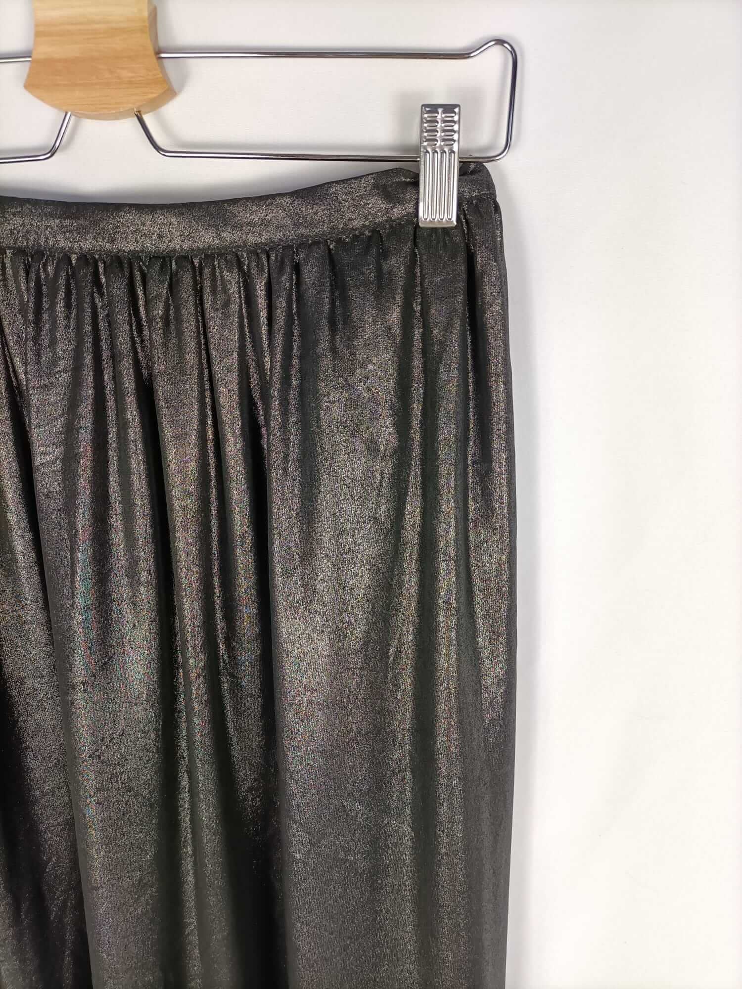 Zara. Falda midi fluida con destellos e hilos dorados. No elástica. Cintura 34 cm largo 74 cm