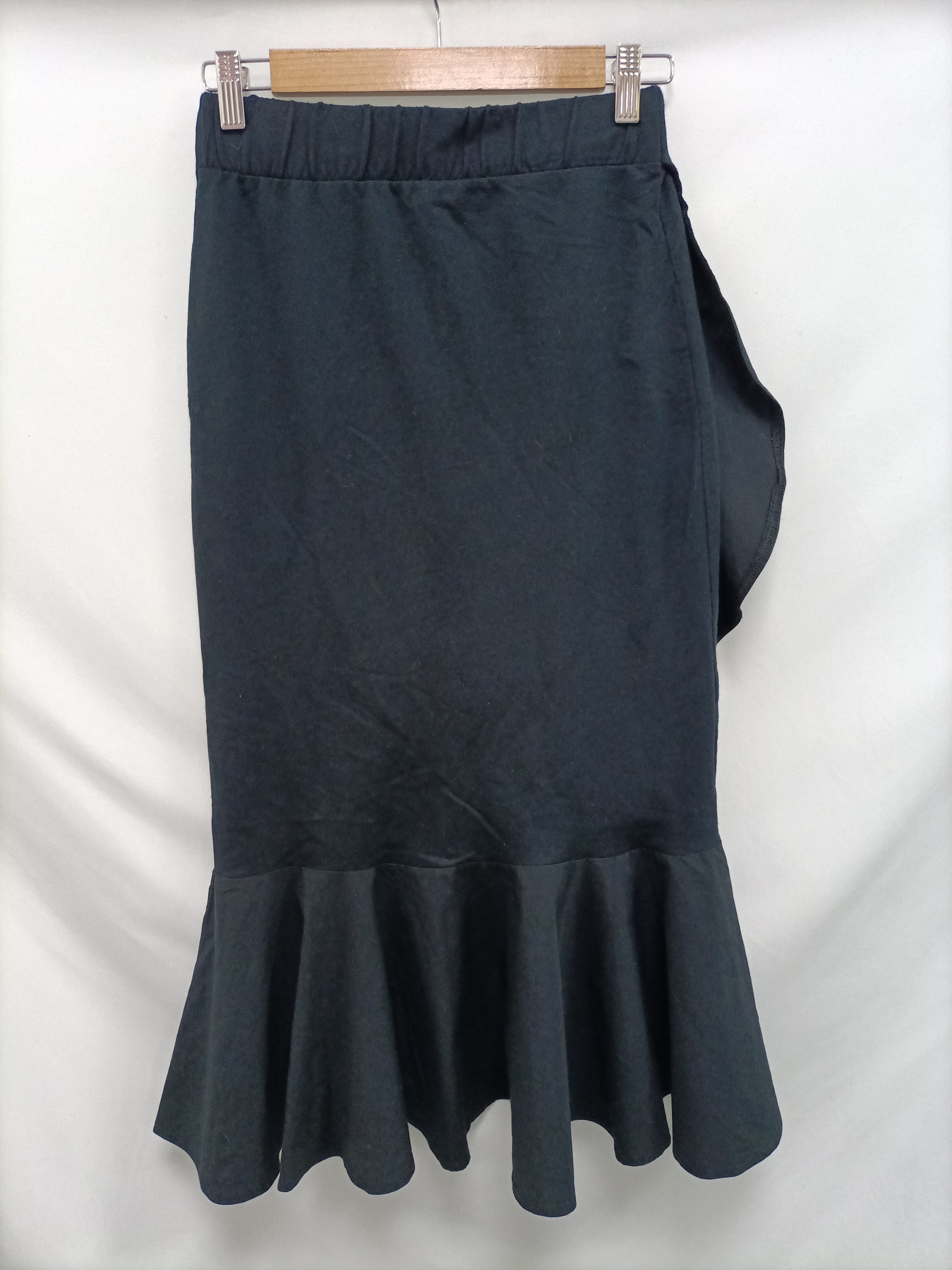 Zara. Flada midi negra con doble tejido volante tipo blusa parte central elástica tipo camiseta. Largo 79 cm