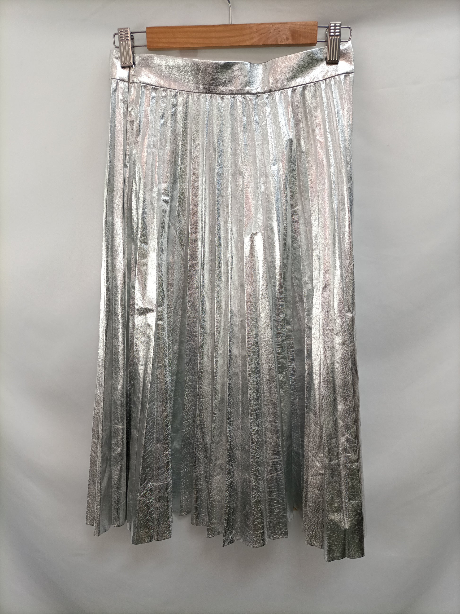 Zara. Falda midi plisada en color plateados. Fluida. No elástica. Cintura 34 cm largo 73 cm