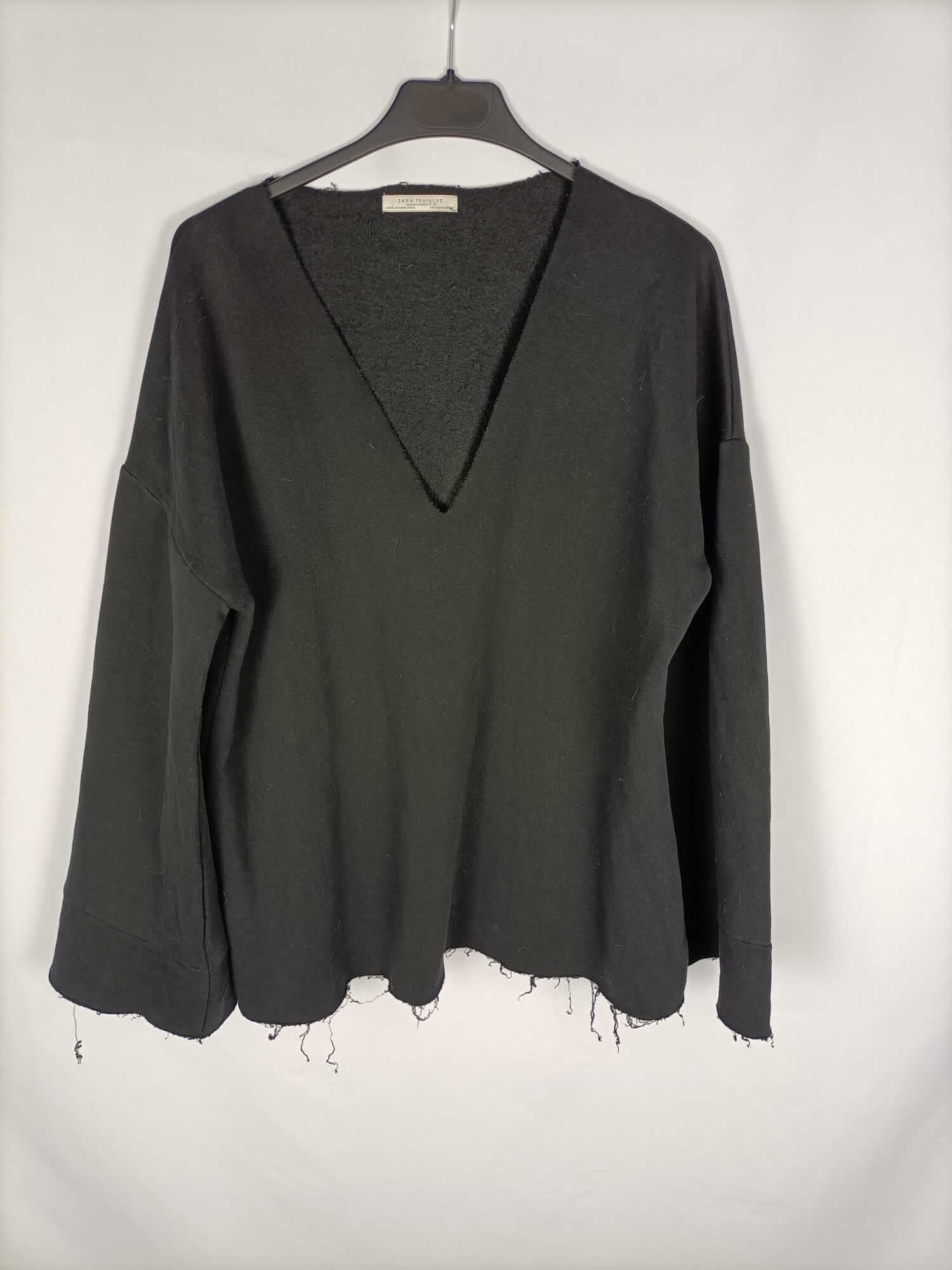 Zara. Sudadera negra estilo oversized con las mangas acampanadas. Elástica. Largo 67 cm